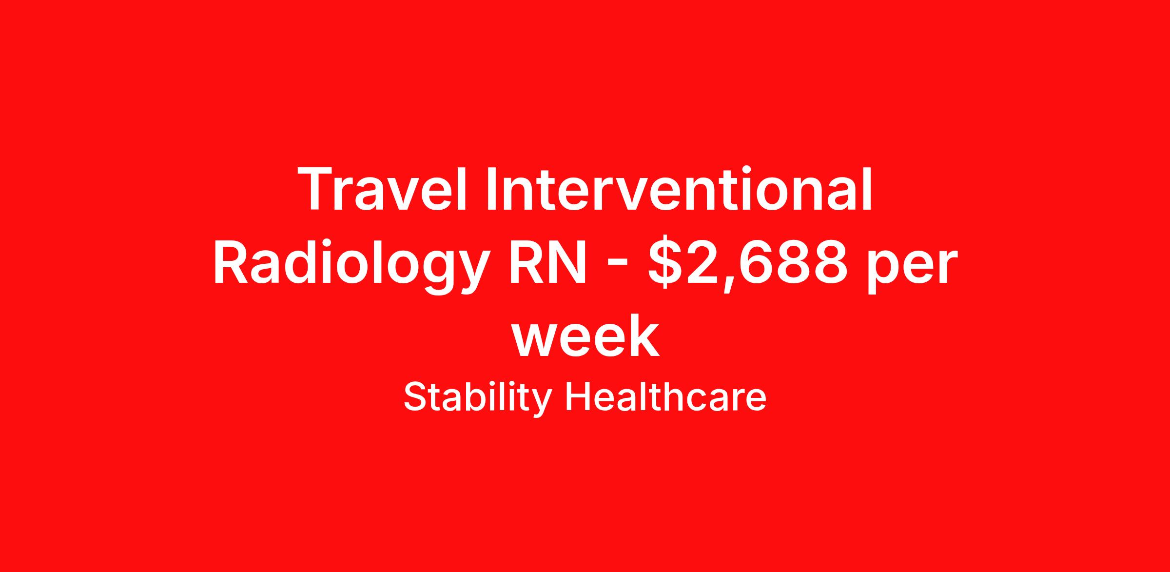 Stability Healthcare is seeking a travel nurse RN Interventional Radiology for a travel nursing job in Decatur, Illinois. Job Description & Requirements Specialty: Interventional Radiology Discipline: RN Start Date: 04/13/2026 Duration: 13 weeks 40 hours per week Shift: 10 hours, days Employment Type: Travel Stability Healthcare is looking for a Interventional Radiology RN contract position in Decatur, IL. The main goal of radiology nurses is patient safety. They monitor and assess patients, provide education to the patient and family members, ensure the patient and family members understand the procedure and plan of care, Insert and remove intravenous lines, administer conscious sedation drugs and other drugs, monitor patient patterns and vital signs during the procedure, and oversee the safety and comfort of patients before, during, and after procedures. *$600 travel bonus *Day 1 health insurance with United Healthcare *PTO plan start accruing on day 1, use during contract or cash out at the end! *Guaranteed stipend if facility calls you off *Extra hour bonus earn an additional hourly bonus for working over your weekly contracted hours Stability Job ID 828542. Pay package is based on 10 hour shifts and 40 hours per week (subject to confirmation) with tax-free stipend amount to be determined. Posted job title: Interventional Radiology About Stability Healthcare Stability Healthcare was founded in 2009, with the mission of becoming the best Travel Nursing Agency in California. We have been rated one of the top travel nursing agencies and offer our nurses the highest paying travel nursing jobs available. We have access to the best travel assignments from 1000’s of facilities. You can start the year off in sunny California, spend the Spring in the Colorado Rockies, enjoy the Summer in the Mid-West, experience the change of seasons in Boston and New York, and hit the beaches of Florida in the winter. Our Nurses work in the best hospitals and health systems in the country. Benefits Guaranteed Hours Benefits start day 1