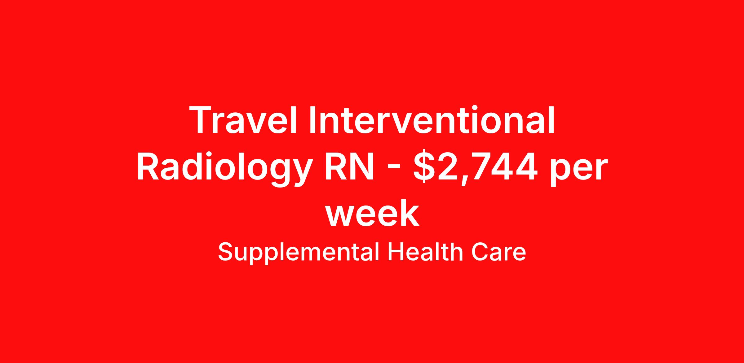 Supplemental Health Care is seeking a travel nurse RN Interventional Radiology for a travel nursing job in Milwaukee, Wisconsin. Job Description & Requirements Specialty: Interventional Radiology Discipline: RN Start Date: ASAP Duration: 13 weeks 36 hours per week Shift: 12 hours, days Employment Type: Travel Job Description: Supplemental Health Care is connecting Interventional Radiology Registered Nurses with top-tier hospital contracts in Milwaukee, Wisconsin. Travel or stay local, either way, we’ll guide you to an opportunity that matches your goals, offering excellent pay, benefits, and support. Qualifications: Current Wisconsin Registered Nurse License / Certification American Heart Association BLS 1 to 2 years of recent Interventional Radiology experience Interventional Radiology Registered Nurse Contract Details: $2,534 - $2,744 per week* Weekly pay 13-week full-time contract with possibility to extend AM shifts available 36 hours per week *Estimated weekly payment may include both taxable wages and tax-free reimbursements for meals, housing, and incidentals. Please speak with a recruiter for details. What We Offer: Full medical, dental, vision, life, and even pet insurance! Round the clock support. No matter where you are or what time it is, Supplemental Health Care is standing by. SHC's Share the Care referral program is the most dynamic, profitable referral program in the industry. 401(k) Retirement Savings Program with a wide range of investment options. Discounted and free online access to CEU courses through Supplemental University. Apply now to launch your next Interventional Radiology Registered Nurse assignment, or ask our team about other exciting Registered Nurse opportunities. Supplemental Health Care is an Equal Opportunity Employer. All candidates, including veterans and those with disabilities, are encouraged to apply. SHC will consider for employment qualified applicants with criminal histories in a manner consistent with the requirements of applicable local, state, or federal law. To learn more, visit www.shccares.com/eeo Supplemental Health Care Job ID 1481595. Pay package is based on 12 hour shifts and 36 hours per week (subject to confirmation) with tax-free stipend amount to be determined. Posted job title: Interventional Radiology Registered Nurse About Supplemental Health Care At Supplemental Health Care, a simple belief in the power of caring guides a unique commitment to world-class service in healthcare staffing. For 40 years, we’ve supported talented professionals pursuing their life calling in hospitals, schools, home health, corrections, behavioral health, and other settings. At SHC, we inspire vital connections and enrich lives and inspire better outcomes. As recipients of the Best in Staffing Awards for both Client and Talent, Supplemental Health Care is proud to be among only 2% of staffing companies singled out for the distinction based on the real feedback of our employees and the clients we serve. SHC has also earned The Joint Commission’s Gold Seal of Approval and is named among the Largest Health Care Staffing companies in the United States by Staffing Industry Analysts. We are also thrilled to recognize our very own SLP, Dr. Kelly Byrd as the American Staffing Association 2024 National Staffing Employee of the Year and Health Care Sector All-Star. We’re honored to connect Dr. Byrd to employment, share her incredible story, and support her family literacy nonprofit. For everyone that we serve, SHC is the place where caring hearts thrive. Benefits Referral bonus Benefits start day 1 401k retirement plan Continuing Education Discount program Health savings account