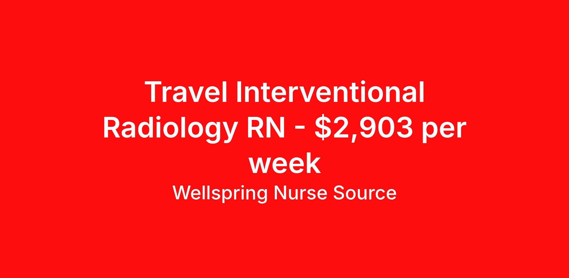 Wellspring Nurse Source is seeking a travel nurse RN Interventional Radiology for a travel nursing job in Columbia, South Carolina. Job Description & Requirements Specialty: Interventional Radiology Discipline: RN Start Date: ASAP Duration: 13 weeks 40 hours per week Shift: 8 hours, flexible Employment Type: Travel Wellspring Nurse Source Job ID 35910937. Pay package is based on 8 hour shifts and 40.0 hours per week (subject to confirmation) with tax-free stipend amount to be determined. Posted job title: Allied Interventional Radiology Technologist About Wellspring Nurse Source Wellspring is nurse owned and operated which means that we get you, we stand behind you, and we advocate for you. We are 100% committed to helping you find your best job at the best rate. We are unwavering in our commitment to supporting our clinicians on every step of their travel adventure, assisting with everything from onboarding and payroll to on-the-job clinical support with a dedicated Clinician Success Team. You’re not just a number at Wellspring, you’re a valued member of our family. Join us and experience the Wellspring difference.