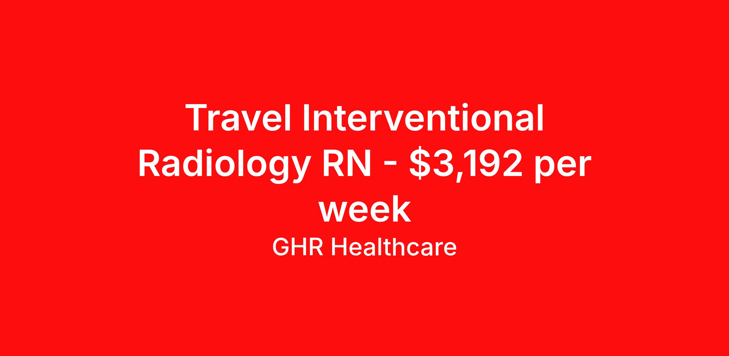 GHR Healthcare is seeking a travel nurse RN Interventional Radiology for a travel nursing job in Pittsfield, Massachusetts. Job Description & Requirements Specialty: Interventional Radiology Discipline: RN Start Date: 04/13/2026 Duration: 13 weeks 40 hours per week Shift: 8 hours Employment Type: Travel GHR Healthcare Job ID 76254259. Pay package is based on 8 hour shifts and 40 hours per week (subject to confirmation) with tax-free stipend amount to be determined. About GHR Healthcare For over 30 years, GHR Healthcare has been the bridge between healthcare professionals and the facilities that need them nationwide. We're committed to uncovering your ideal fit, supported by GHR's dedication to competitive compensation, transparent communication, and a devoted team that genuinely cares about your career journey. You can trust us to stand by your side as your advocate, confidante, and partner in advancing your career. At GHR, care and consideration are at the heart of everything we do. Visit ghrhealthcare.com to learn more.