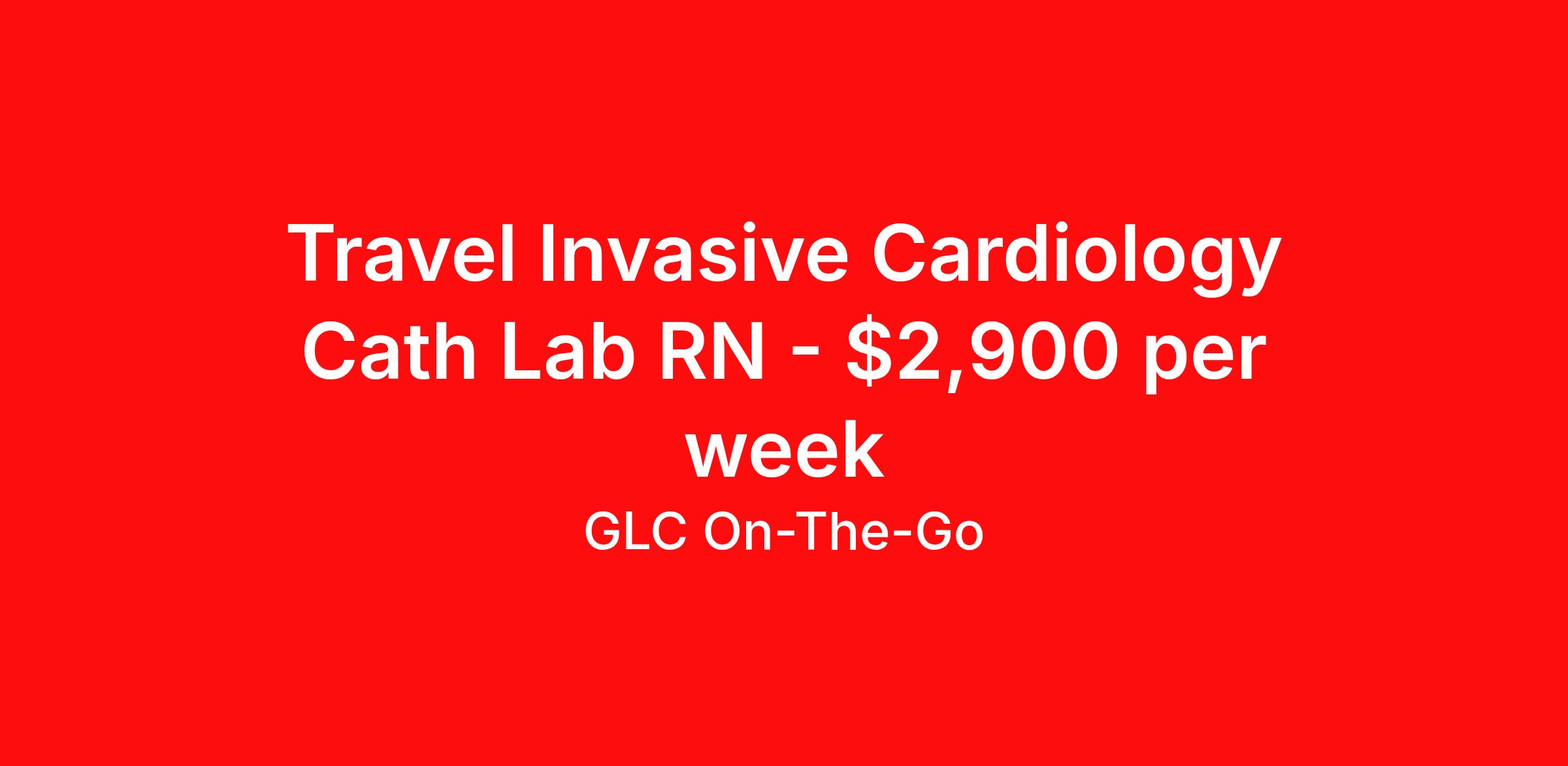 GLC On-The-Go is seeking a travel nurse RN Cardiac Cath Lab for a travel nursing job in York, Pennsylvania. Job Description & Requirements Specialty: Cardiac Cath Lab Discipline: RN Start Date: 04/13/2026 Duration: 13 weeks 40 hours per week Shift: 8 hours Employment Type: Travel GLC is hiring: RN Cardiac Cath Lab - York, PA - 13-week contract GLC – Named Best Nurse Agency 2024–2025 We connect nurses, nursing professionals, and allied health professionals like you to contracts that align with your skills, schedule, and career goals. About this Assignment Join the care team in Cardiac Cath Lab where you’ll provide patient-centered care in a collaborative environment. Typical responsibilities include direct patient care, timely documentation, and coordination with the care team. Specific duties will be confirmed during your interview with a recruiter. Assignment Details Location: York, PA Assignment Length: 13 weeks Start Date: 04/13/2026 End Date: 07/13/2026 Pay Range: $2,610 - $2,900 Minimum Requirements Active license in Cardiac Cath Lab 1 year full-time RN, Cardiac Cath Lab experience within the last 2 years What you can expect from GLC Weekly on-time pay with direct deposit Transparent communication, clear assignment details, and recruiter support from start to finish - or extension Referral bonus up to $500 Health, dental, and vision insurance 401(k) plan Completion and signing bonuses may also be available Ready to move forward? Apply now and start your rewarding journey with GLC - a recruiter will connect quickly to review pay , start date , and assignment details so you can make the best decision for your next contract. GLC On-The-Go Job ID 503942. Pay package is based on 8 hour shifts and 40 hours per week (subject to confirmation) with tax-free stipend amount to be determined. Posted job title: Cath Lab Registered Nurse About GLC On-The-Go GLC is more than just a staffing agency – we’re your trusted partner in finding travel, local, and PRN contracts that align with your career aspirations and lifestyle. We specialize in connecting travel nurses and allied healthcare professionals like you with opportunities in acute care, long-term care, behavioral health, and allied fields across the U.S. Our attentive and friendly recruiters are always just a call or text away, ready to guide you at every step, ensuring you feel valued and heard. We understand the unique needs of travel healthcare professionals, which is why we offer comprehensive benefits and 24/7 support. Join GLC, where our 20 years of experience mean we know how to help you find the assignments that turn your career goals into reality. With us, it's not just a placement – it's your dream career made possible