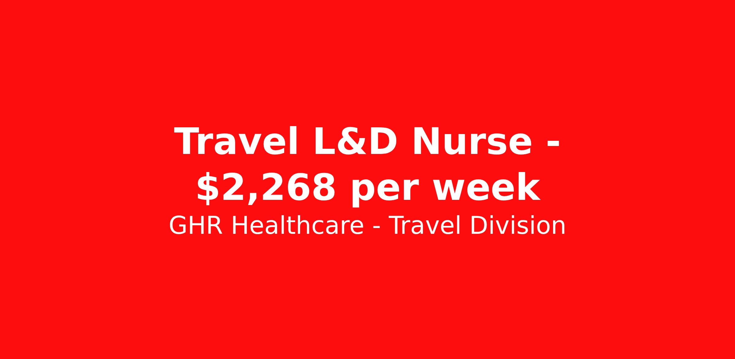 GHR Healthcare - Travel Division is seeking a travel nurse RN Labor and Delivery for a travel nursing job in Tulsa, Oklahoma. Job Description & Requirements Specialty: Labor and Delivery Discipline: RN Start Date: 04/06/2026 Duration: 12 weeks 36 hours per week Shift: 12 hours Employment Type: Travel GHR Healthcare - Travel Division Job ID 76381809. Pay package is based on 12 hour shifts and 36 hours per week (subject to confirmation) with tax-free stipend amount to be determined. About GHR Healthcare - Travel Division For over 30 years, GHR Healthcare has been the bridge between healthcare professionals and the facilities that need them nationwide. We're committed to uncovering your ideal fit, supported by GHR's dedication to competitive compensation, transparent communication, and a devoted team that genuinely cares about your career journey. You can trust us to stand by your side as your advocate, confidante, and partner in advancing your career. At GHR, care and consideration are at the heart of everything we do. Visit ghrhealthcare.com to learn more.