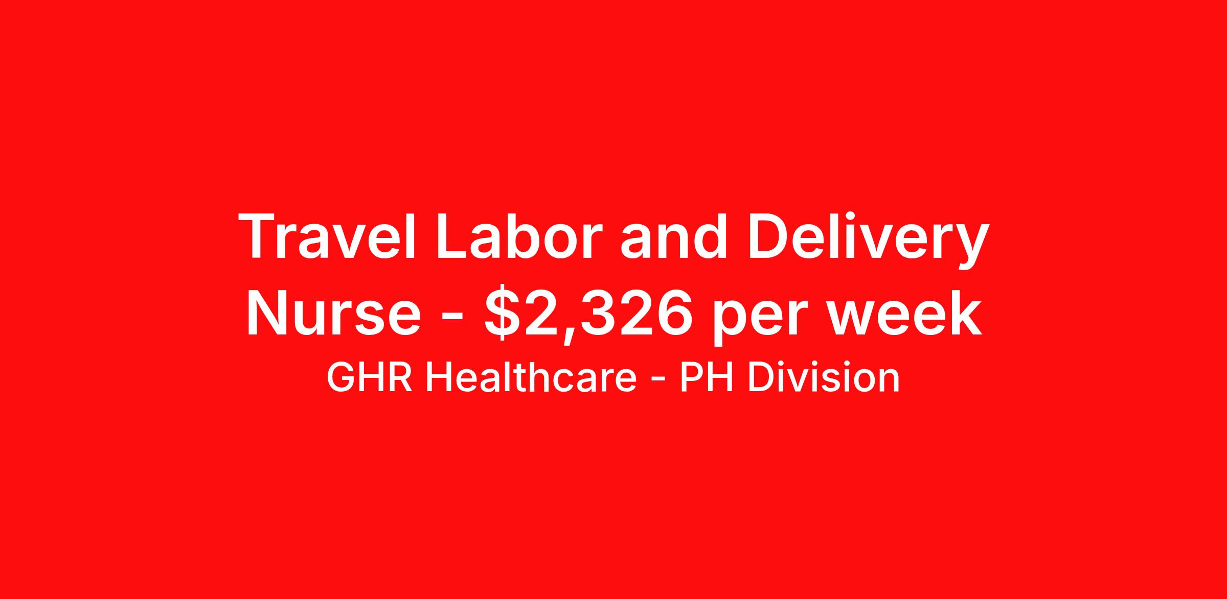 GHR Healthcare - PH Division is seeking a travel nurse RN Labor and Delivery for a travel nursing job in Viroqua, Wisconsin. Job Description & Requirements Specialty: Labor and Delivery Discipline: RN Start Date: ASAP Duration: 12 weeks 36 hours per week Shift: 12 hours Employment Type: Travel Planet Healthcare Job ID 76118807. Pay package is based on 12 hour shifts and 36 hours per week (subject to confirmation) with tax-free stipend amount to be determined. About GHR Healthcare - PH Division For over 30 years, GHR Healthcare has been the bridge between healthcare professionals and the facilities that need them nationwide. We're committed to uncovering your ideal fit, supported by GHR's dedication to competitive compensation, transparent communication, and a devoted team that genuinely cares about your career journey. You can trust us to stand by your side as your advocate, confidante, and partner in advancing your career. At GHR, care and consideration are at the heart of everything we do. Visit ghrhealthcare.com to learn more.
