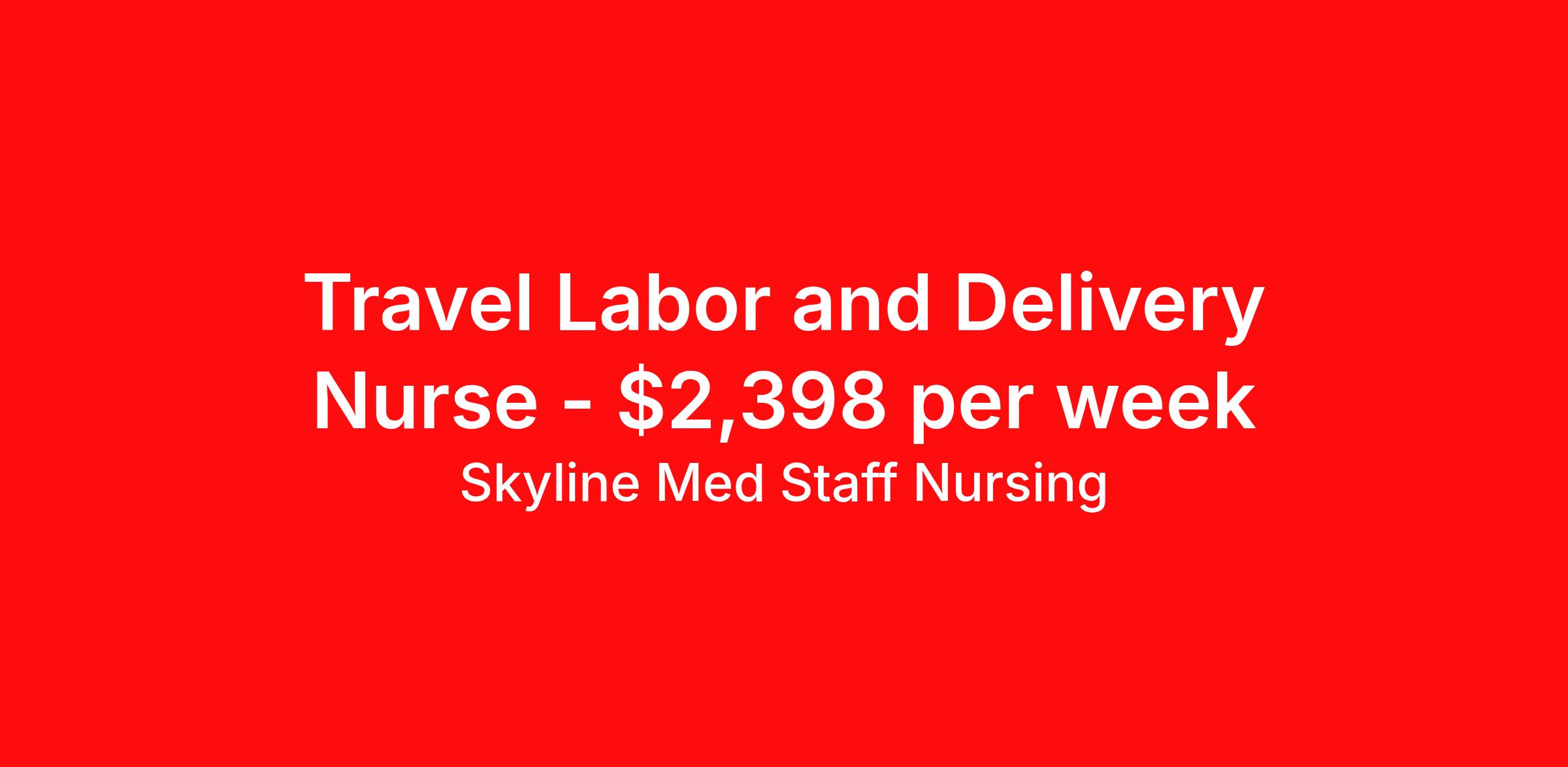 Skyline Med Staff Nursing is seeking a travel nurse RN Labor and Delivery for a travel nursing job in Pella, Iowa. Job Description & Requirements Specialty: Labor and Delivery Discipline: RN Start Date: ASAP Duration: 12 weeks 36 hours per week Shift: 12 hours, nights Employment Type: Travel Weekly amount stated in job postings is an estimate based on estimated hourly wage and potential stipends available for the location of the assignment. Pay package is calculated on bill rate at the time job was posted, but can change or vary without notice. Exact pay packages might vary as this is an estimate. Our recruiter would be happy to build an exact pay package for you for each job. Skyline Med Staff Nursing Job ID 36206075. Pay package is based on 12 hour shifts and 36.0 hours per week (subject to confirmation) with tax-free stipend amount to be determined. Posted job title: RN:L&D,19:00:00-07:00:00 About Skyline Med Staff Nursing Join the Top- Rated Travel Healthcare Team! Skyline Med Staff was named as the 1 Best Travel Healthcare Company in 2025 by BluePipes, a recognition driven by glowing reviews from travel healthcare professionals. Our recruiters are consistently praised on Google for their responsiveness, dedication, accessibility, and industry knowledge. Ready to experience the difference? Apply for a job today and see why healthcare professionals choose Skyline! Certified Women Owned Business We believe that travel is good for the soul. We want to be on your journey with you and find the right job that fits you Skyline Med Staff is committed to one vision treating others the way that THEY want to be treated. The executive team at Skyline Med Staff focuses on a commitment to quality, consistency, and the highest level of service. Our team members continually strive to build long term relationships that center on you and helping you achieve your goals. Some of the Benefits you will receive with Skyline Med Staff: Over 30 years of combined experience in the staffing industry Higher Take-Home Pay Rates Dedicated Personal Recruiter We are available to you 24/7 Health Insurance Plan Options Tax Free Per Diems, Housing Stipends and Travel Reimbursements Joint Commission Certified Contracts in all 50 states Referral and Loyalty Bonuses Benefits Medical benefits Referral bonus