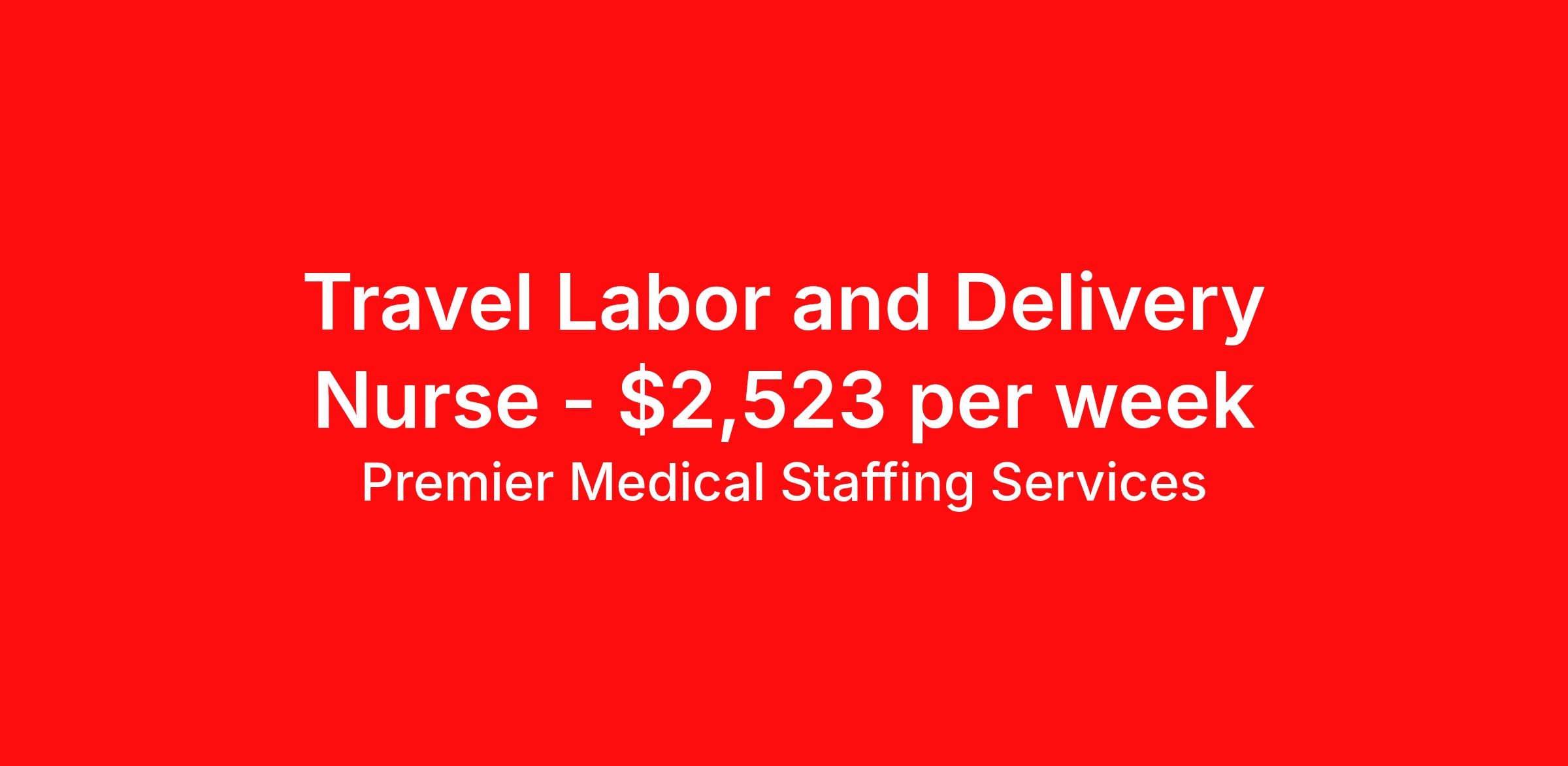 Premier Medical Staffing Services is seeking a travel nurse RN Labor and Delivery for a travel nursing job in Pella, Iowa. Job Description & Requirements Specialty: Labor and Delivery Discipline: RN Start Date: ASAP Duration: 12 weeks 36 hours per week Shift: 12 hours Employment Type: Travel Premier Medical Staffing Job ID 626685. Pay package is based on 12 hour shifts and 36 hours per week (subject to confirmation) with tax-free stipend amount to be determined. Posted job title: RN L&D About Premier Medical Staffing Services Premier Medical Staffing Services, LLC is a nationally expanding healthcare staffing firm for healthcare professionals and companies. We understand our clients’ need for highly qualified, expertly trained medical professionals and are passionate about helping clinicians find employment opportunities that fit their personality and needs. Able to accommodate the ever-changing needs of the healthcare landscape, we offer per-diem, contract and direct hire placements to support the unique needs of each industry sector. Premier Medical Staffing Services is Joint Commission Certified, a Military Spouse Employment Partner and is certified as a Women’s Business Enterprise. We are proudly nurse owned.