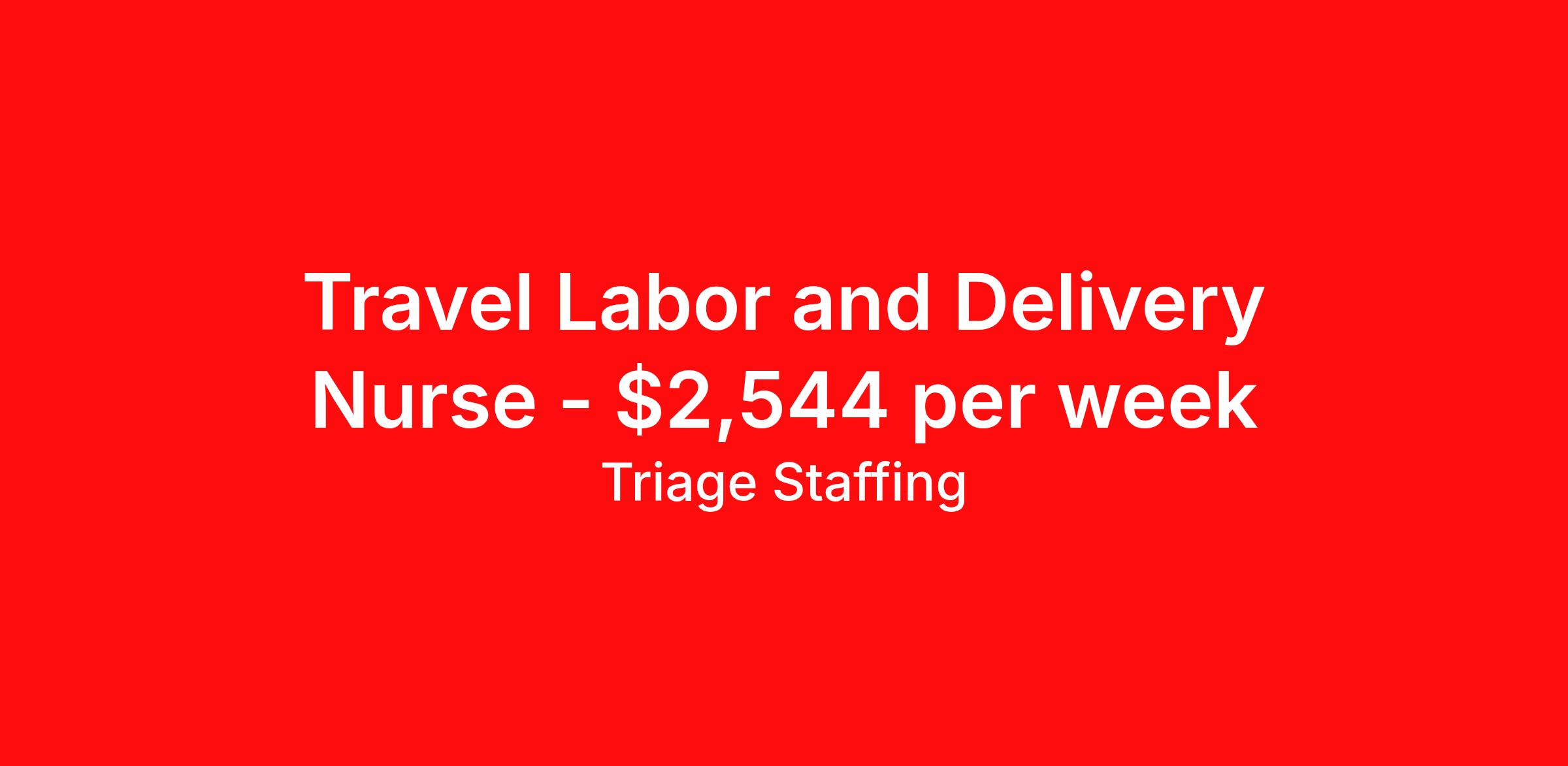 Triage Staffing is seeking a travel nurse RN Labor and Delivery for a travel nursing job in Santa Rosa, California. Job Description & Requirements Specialty: Labor and Delivery Discipline: RN Start Date: 05/18/2026 Duration: 13 weeks 36 hours per week Shift: 12 hours, nights Employment Type: Travel Travel Nursing: Labor and Delivery Santa Rosa, CA Location: Santa Rosa, CA Start Date: 5/18/2026 Shift Details: 12H Nights 36 hours per week Length: 13 WEEKS Apply for specific facility details.L&D RN Triage Staffing Job ID DF7TGL4W. Posted job title: Nursing: Labor and Delivery About Triage Staffing At Triage, we prefer to be real . Real about expectations—both ours and yours. Real about how a decision you make today could affect your tomorrows. Real about how compensation actually works. Real about how great—or grating—your next supervisor may be. Being real allows everyone at Triage to be ready . Ready to serve you with real honesty. So if that gig near the ocean is really no day at the beach, or that third shift comes with a second-class rate, we tell you. So you can be ready, too. We staff all five major divisions of acute care—nursing, lab, radiology, cardiopulmonary and rehab therapy, offering: - Competitive, custom pay packages - One point of contact for both travelers and facilities (per division) - A reliable recruiter who's got your back throughout your entire assignment - In-house compliance and accounting specialists - A clinical liaison team available 24/7 to offer medical and professional support and career development - A mentoring program that is run and managed by actual clinicians—yeah, you read that right - And more (because of course there’s more) Are we the biggest? No. Are we the best? That’s rather subjective, but we’re trying to be. Will we work like hell to get you as close to your idea of heaven as possible? Yes. Yes, we will. Benefits: Day One comprehensive, nationwide insurance plans for health, vision and dental and life—including a HSA option Day One 401(k) program with employer-matching contributions once eligible Facility cancelling protection—your time is money on and off-the-clock Guaranteed hours Weekly paychecks via direct deposit Earned vacation bonuses for time worked Paid holidays Employee assistance program (EAP)—your mental health is important, too Continuing education, certification and licensing reimbursement Workers comp—because accidents happen Top-rated professional liability insurance Company provided housing options Referral bonus—$750 in your pocket after they’ve completed a 13-week assignment