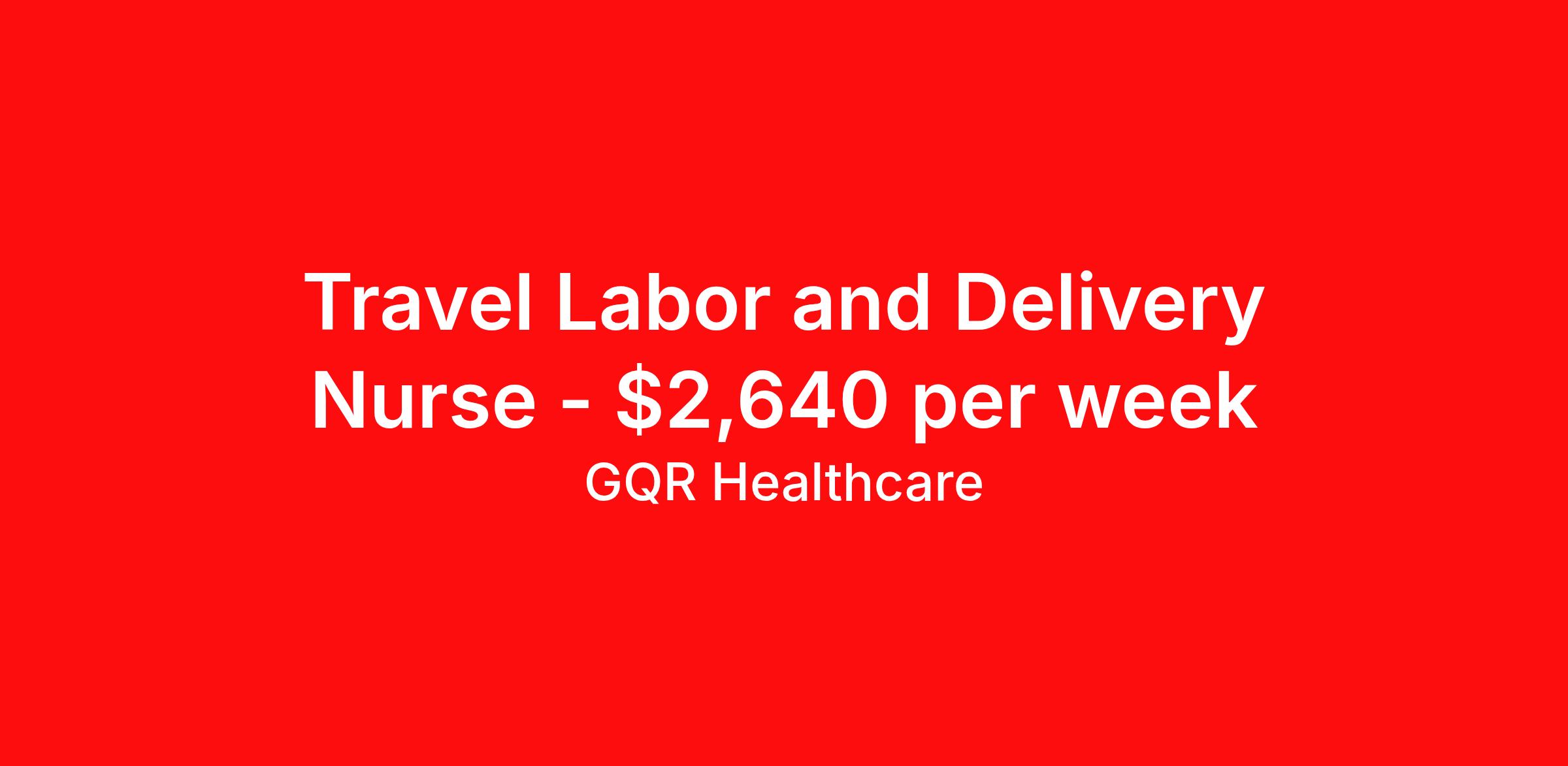 GQR Healthcare is seeking a travel nurse RN Labor and Delivery for a travel nursing job in Alliance, Nebraska. Job Description & Requirements Specialty: Labor and Delivery Discipline: RN Start Date: ASAP Duration: 13 weeks 36 hours per week Shift: 12 hours, nights Employment Type: Travel Contract - W2 Labor and Delivery Registered Nurse (RN) Job Location: Alliance, Nebraska Start Date: March 3, 2026 Profession: Registered Nurse (RN) Facility: Estimated Pay: $2639.56 - $2734.56 Duration:13 weeks Specialty:Labor and Delivery Shift: Night Shift Details: null Night Job Type: Travel *Estimated weekly pay includes projected hourly wages and weekly meal and lodging per diems for eligible clinicians based on nationally published GSA rates. Actual weekly pay and per diems may differ from the amount shown and are subject to change during an assignment. Benefits: Day 1 Insurance Cigna medical, MetLife dental and vision insurance License reimbursement for new licenses needed for each assignment Discounts with hotels and rental cars A dedicated recruiter and support team that will help you every step of the way to sure you start on time and have an exceptional experience Referral bonus up to $700 About the Company: Finding the right role is about more than just matching skills to a job—it’s about aligning with your goals, values, and the way you want to work. As an award-winning talent partner, we support healthcare professionals through every step of that process, offering meaningful opportunities, clear guidance, and long-term partnership. From our first conversation to your first day on the job (and beyond!), we’re here to help you move forward with confidence. GQR Job ID 774493. Pay package is based on 12 hour shifts and 36 hours per week (subject to confirmation) with tax-free stipend amount to be determined. Posted job title: Registered Nurse (RN) About GQR Healthcare GQR’s Healthcare team specializes in connecting experts within the industry to highly skilled healthcare professionals across the US market. In the competitive healthcare market, we recognize that the industry’s common goals of improved quality of care and patient outcomes are wholly reliant upon the professionals directly supporting these initiatives. Leveraging our extensive candidate network, we deliver continuity of care for the communities our partners serve to ensure the patient experience is of the highest quality. Through deep market specialization and a unique approach to talent acquisition, GQR Healthcare provides an unparalleled and personalized experience across all medical specialties in nursing and within diverse healthcare platforms across the industry.