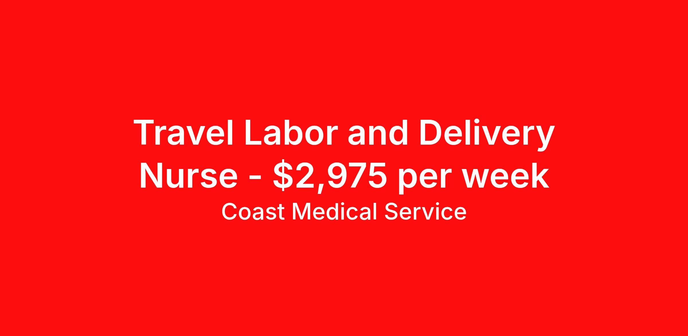 Coast Medical Service is seeking a travel nurse RN Labor and Delivery for a travel nursing job in Fairbanks, Alaska. Job Description & Requirements Specialty: Labor and Delivery Discipline: RN Start Date: 05/10/2026 Duration: 16 weeks 36 hours per week Shift: 12 hours, nights Employment Type: Travel Coast Medical Service is a nationwide travel nursing & allied healthcare staffing agency dedicated to providing an elite traveler experience for the experienced or first-time traveler. Coast is featured on Blue Pipes' 2023 Best Travel Agencies and named a 2022 Top Rated Healthcare Staffing Firm & 2023 First Half Top Rated Healthcare Staffing Firm by Great Recruiters. Please note that pay rate may differ for locally based candidates. Please apply here or contact a recruiter directly to learn more about this position & the facility, and/or explore others that may be of interest to you. We look forward to speaking with you! Coast Medical Services Job ID 36143371. Pay package is based on 12 hour shifts and 36.0 hours per week (subject to confirmation) with tax-free stipend amount to be determined. Posted job title: RN:Labor and Delivery,19:00:00-07:30:00
