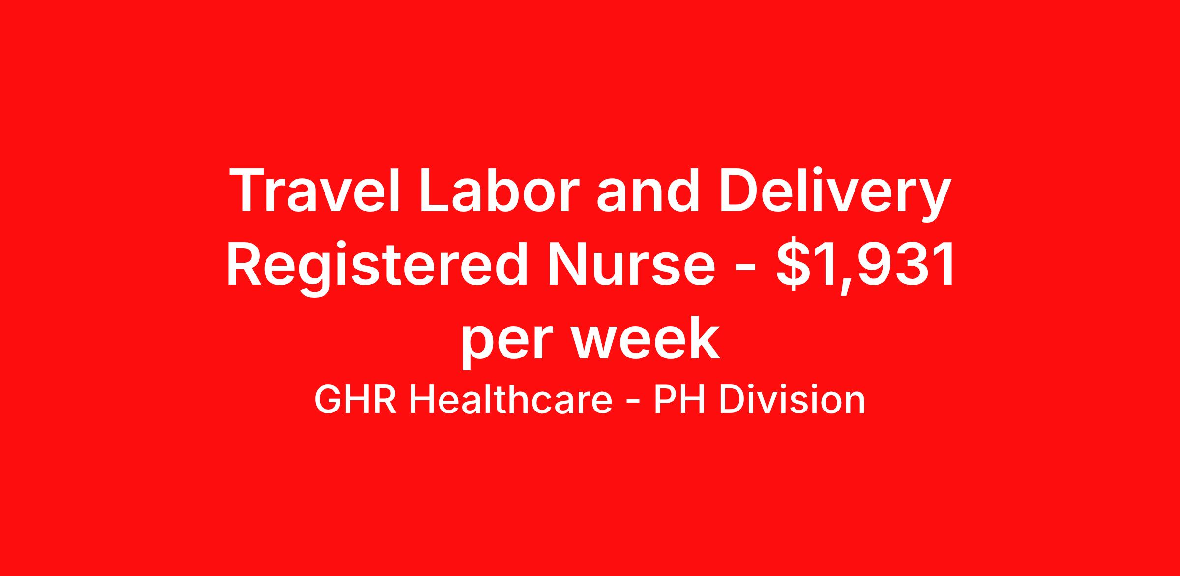 GHR Healthcare - PH Division is seeking a travel nurse RN Labor and Delivery for a travel nursing job in Cleveland, Ohio. Job Description & Requirements Specialty: Labor and Delivery Discipline: RN Start Date: 04/17/2026 Duration: 13 weeks 36 hours per week Shift: 12 hours Employment Type: Travel Planet Healthcare Job ID 76360526. Pay package is based on 12 hour shifts and 36 hours per week (subject to confirmation) with tax-free stipend amount to be determined. About GHR Healthcare - PH Division For over 30 years, GHR Healthcare has been the bridge between healthcare professionals and the facilities that need them nationwide. We're committed to uncovering your ideal fit, supported by GHR's dedication to competitive compensation, transparent communication, and a devoted team that genuinely cares about your career journey. You can trust us to stand by your side as your advocate, confidante, and partner in advancing your career. At GHR, care and consideration are at the heart of everything we do. Visit ghrhealthcare.com to learn more.