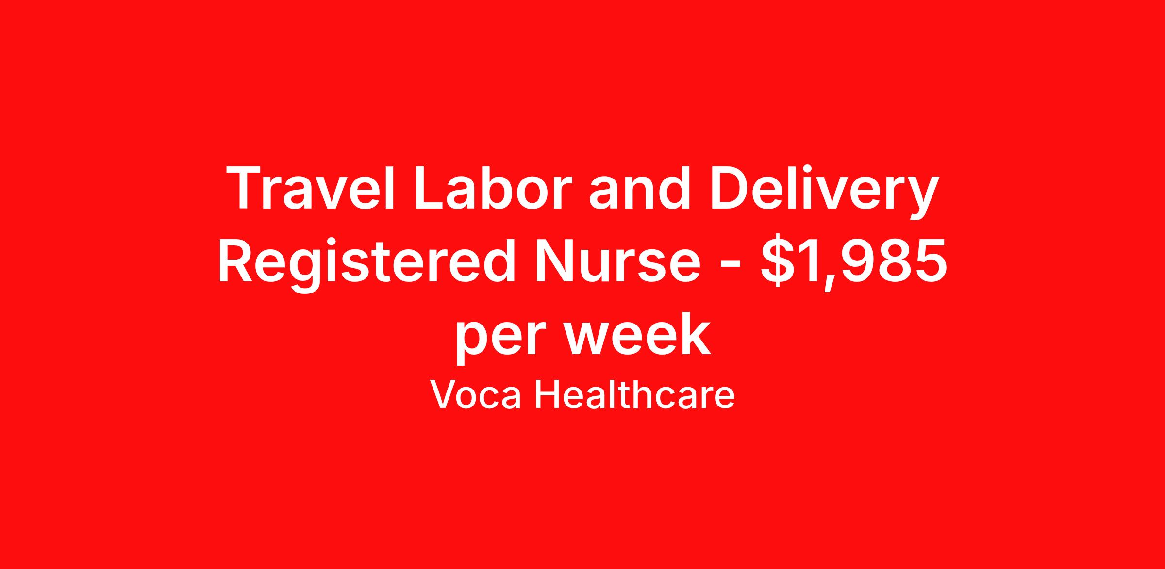 Travel Labor and Delivery Registered Nurse - $1,985 per week