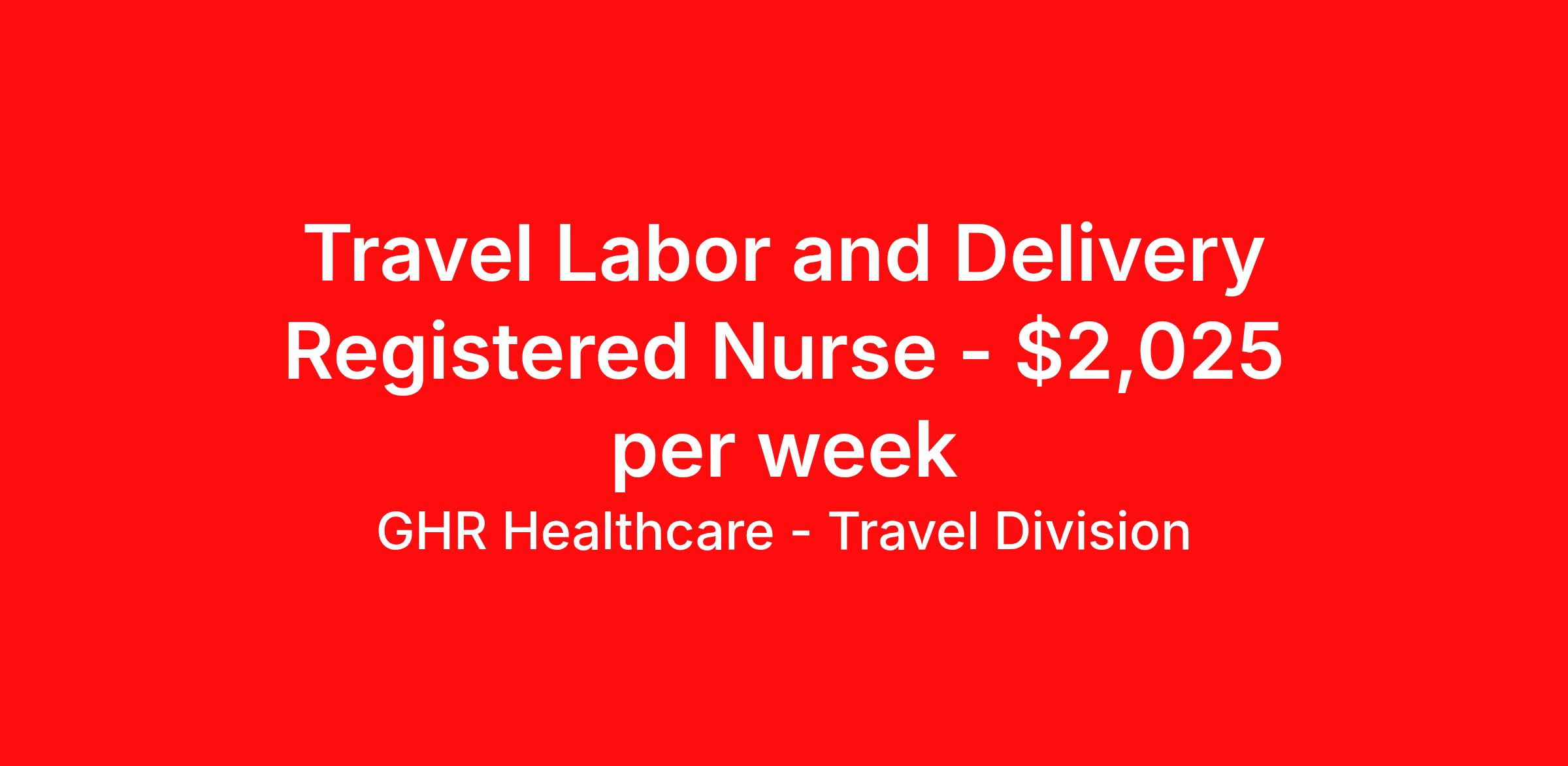 GHR Healthcare - Travel Division is seeking a travel nurse RN Labor and Delivery for a travel nursing job in Tulsa, Oklahoma. Job Description & Requirements Specialty: Labor and Delivery Discipline: RN Start Date: 04/06/2026 Duration: 13 weeks 36 hours per week Shift: 12 hours Employment Type: Travel GHR Healthcare - Travel Division Job ID 76376919. Pay package is based on 12 hour shifts and 36 hours per week (subject to confirmation) with tax-free stipend amount to be determined. About GHR Healthcare - Travel Division For over 30 years, GHR Healthcare has been the bridge between healthcare professionals and the facilities that need them nationwide. We're committed to uncovering your ideal fit, supported by GHR's dedication to competitive compensation, transparent communication, and a devoted team that genuinely cares about your career journey. You can trust us to stand by your side as your advocate, confidante, and partner in advancing your career. At GHR, care and consideration are at the heart of everything we do. Visit ghrhealthcare.com to learn more.