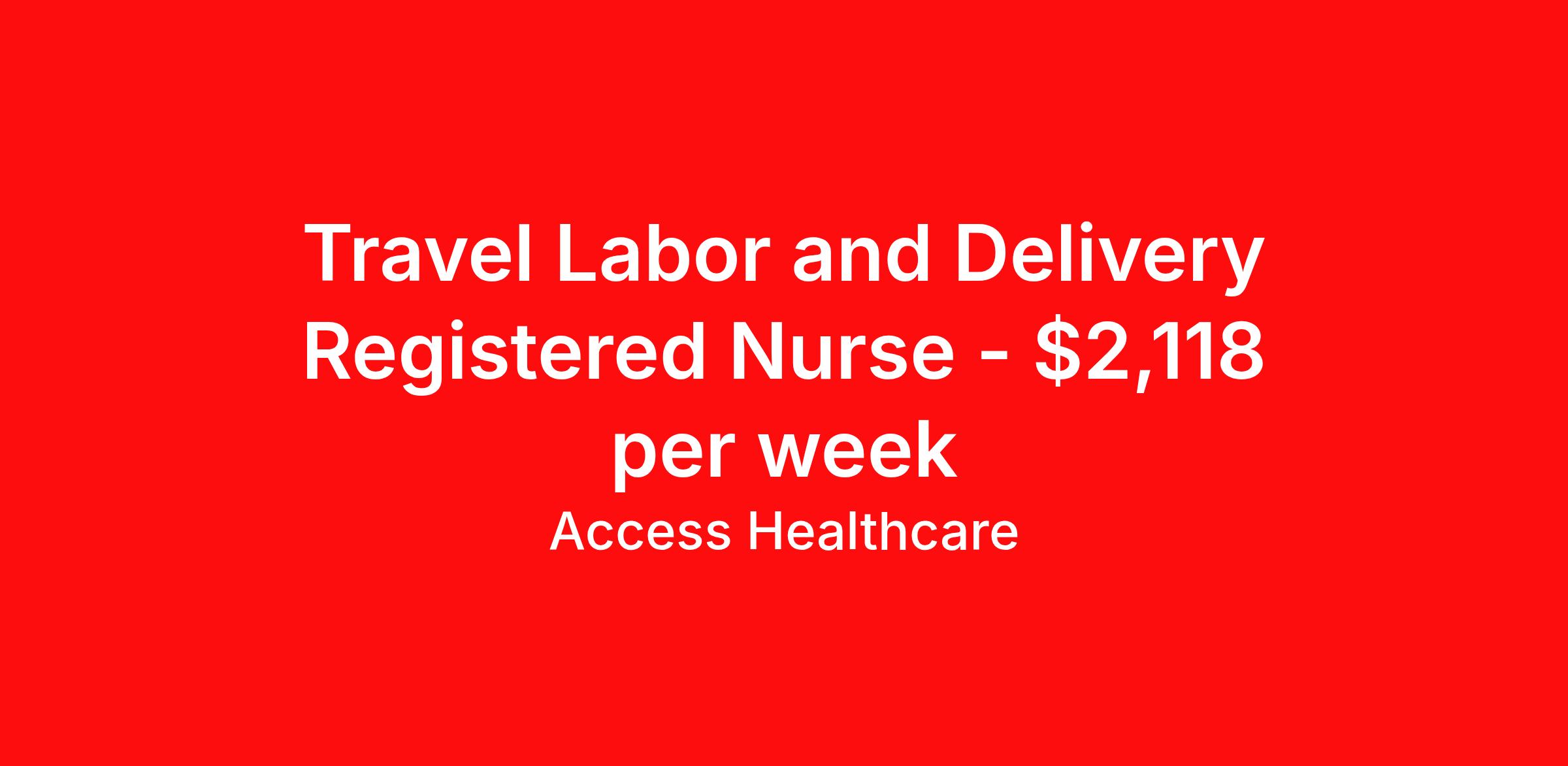 Access Healthcare is seeking a travel nurse RN Labor and Delivery for a travel nursing job in Washington, District of Columbia. Job Description & Requirements Specialty: Labor and Delivery Discipline: RN Start Date: 04/13/2026 Duration: 13 weeks 36 hours per week Shift: 12 hours, rotating Employment Type: Travel Access Healthcare Job ID 76036602. Pay package is based on 12 hour shifts and 36 hours per week (subject to confirmation) with tax-free stipend amount to be determined. About Access Healthcare Access Healthcare aims to provide superior service to our nursing family by providing around the clock support, competitive pay packages and an unmatched benefits package! Unlike other agencies, we offer a true family feel and work with you to find the placement that is right for you. We offer one of the top leading pay packages in the industry and we are ready to get you the money you deserve! Access Healthcare was founded by two travel nurses, Danielle and Diego, who had a dream and a shared vision of creating an agency which all nurses would want to work with. Our passion has led us to where we are today as one of the top 10 agencies in our home state of New Jersey, with access to contracts in all 50 states! We encourage you to join our team and we cannot wait to get to know you!