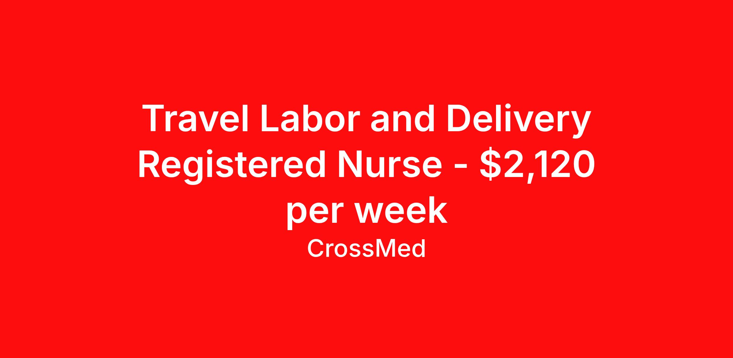 Travel Labor and Delivery Registered Nurse - $2,120 per week