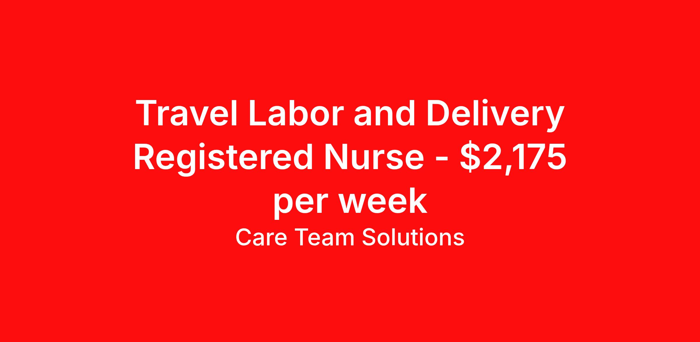Care Team Solutions is seeking a travel nurse RN Labor and Delivery for a travel nursing job in Clinton, Maryland. Job Description & Requirements Specialty: Labor and Delivery Discipline: RN Start Date: 04/20/2026 Duration: 13 weeks 36 hours per week Shift: 12 hours Employment Type: Travel Registered Nurse must have 2 years of recent experience in particular specialty Details: Must Have 2 Years of recent Labor and Delivery experience. Specialty: Labor and Delivery Discipline: Registered Nurse Start Date: 2026-04-20 Duration: 13 Weeks Shift: 12 Hours Overnight shift. Hours Per Week: 36 Hours Employment Type: Contract Gross Weekly Pay: $2174.56 Six things that won’t happen if you apply to this job: You won’t have to guess what the downsides are. We’ll tell you up front. You won’t show up on day 1 and find out this is not what you signed up for. We won't leave your phone call ringing when it's inconvenient. Business hours for you are business hours for us. You won’t get shuffled to some customer service rep when a problem pops up. If we screw up something in securing your placement, we'll own it. That means it's on us to make it right. You won’t figure out your credentials alone. Our credentialing experts will walk you through it step by step. We've talked to thousands of travel nurses like you. We know you want good pay. You want to choose when you work. But the one thing nurse after nurse has said they want and don't have is someone in their corner. There's a lot in this business that’s messed up. We’re trying to be the people that fix it. You and every nurse with the guts to travel deserve it. We've worked hard for you to enjoy some one-of-a-kind benefits you'll not likely find anywhere else, because they benefit you more than they benefit us: Our early pay program Student loan reimbursement Free well-being tele-visits with a psychologist Care Team Solutions Job ID 586768. Pay package is based on 12 hour shifts and 36 hours per week (subject to confirmation) with tax-free stipend amount to be determined. Posted job title: Labor and Delivery Registered Nurse About Care Team Solutions Two brothers who give an enormous damn. We're Justin and Kyle. Neither of us are nurses. It doesn’t take a nurse to see that the way travel nurses are treated sucks. Nursing is already hard enough. Travel nursing takes serious guts. You get the toughest assignments in places you’ve never been. Which can be fun, but it’s also stressful. You’re in your element but outside of your hometown. You can be a stranger on the team. If anyone deserves someone in their corner, it’s you. But that’s not how most agencies operate. Which is why travel nurses hate working with them. We got into this business because we saw bucket-loads of nurses moving through the "churn and burn" travel machinery. We absolutely hate that. You'll do your best work when you have the placements you want and feel fully supported in your work. We pay our people well because we want them to treat you well. Our recruiters are amazing (we picked each of them ourselves), but if you've got a problem too big for them, they can come straight to us. We work like ten feet away. The "Churners and Burners" promise you the same benefits. They might as well copy/paste them from each other. We have them too: 401k, holiday pay, healthcare, dental, travel reimbursement, etc But we've worked hard for you to enjoy some one-of-a-kind benefits you'll not likely find anywhere else, because they benefit you more than they benefit us: Our early pay program Student loan reimbursement Free well-being tele-visits with a psychologist Benefits Weekly pay Holiday Pay Guaranteed Hours 401k retirement plan Wellness and fitness programs Referral bonus Medical benefits Dental benefits Vision benefits School loan reimbursement