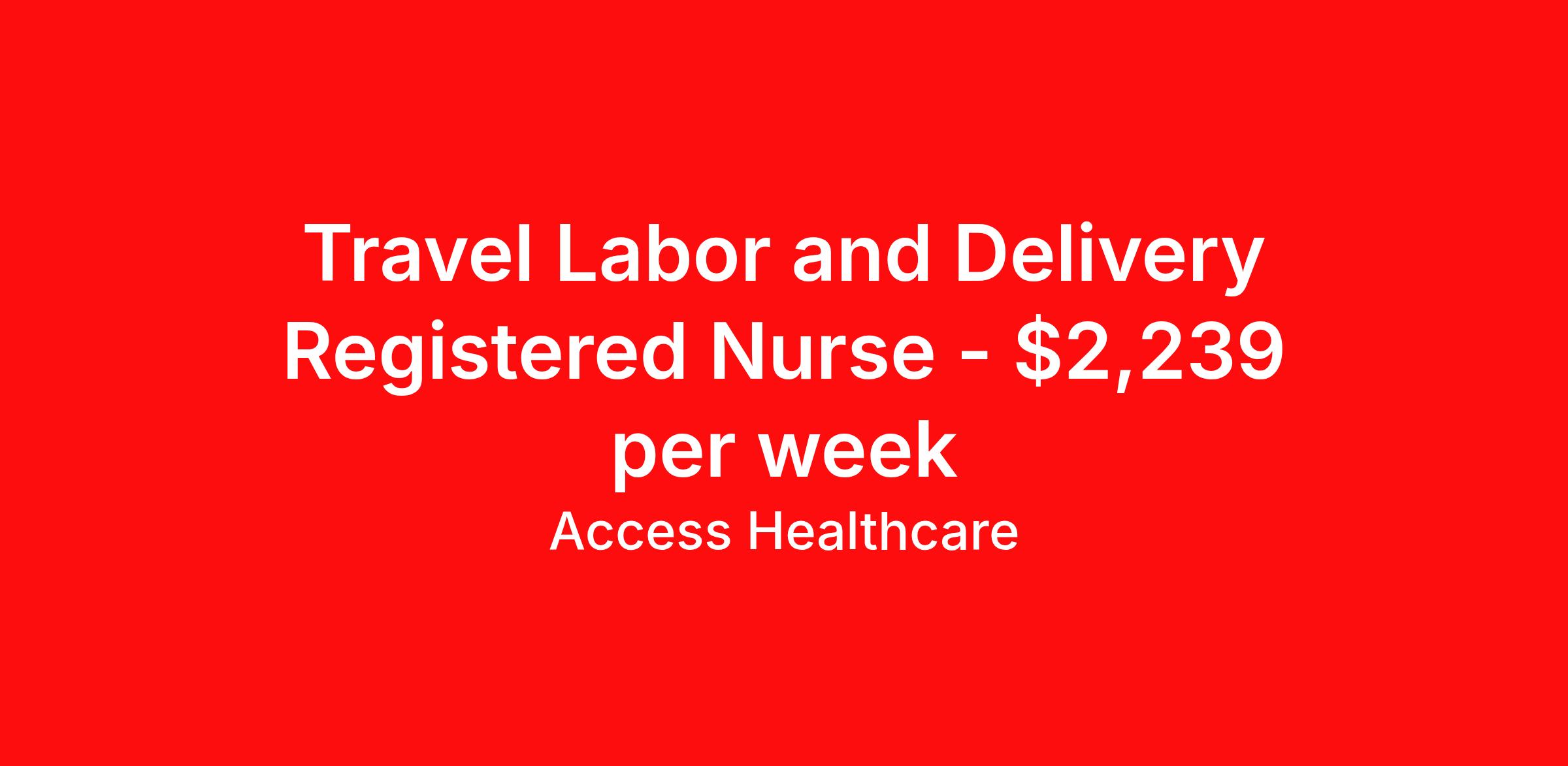 Access Healthcare is seeking a travel nurse RN Labor and Delivery for a travel nursing job in Edmonds, Washington. Job Description & Requirements Specialty: Labor and Delivery Discipline: RN Start Date: 04/20/2026 Duration: 13 weeks 36 hours per week Shift: 12 hours, nights Employment Type: Travel Access Healthcare Job ID 76319224. Pay package is based on 12 hour shifts and 36 hours per week (subject to confirmation) with tax-free stipend amount to be determined. About Access Healthcare Access Healthcare aims to provide superior service to our nursing family by providing around the clock support, competitive pay packages and an unmatched benefits package! Unlike other agencies, we offer a true family feel and work with you to find the placement that is right for you. We offer one of the top leading pay packages in the industry and we are ready to get you the money you deserve! Access Healthcare was founded by two travel nurses, Danielle and Diego, who had a dream and a shared vision of creating an agency which all nurses would want to work with. Our passion has led us to where we are today as one of the top 10 agencies in our home state of New Jersey, with access to contracts in all 50 states! We encourage you to join our team and we cannot wait to get to know you!