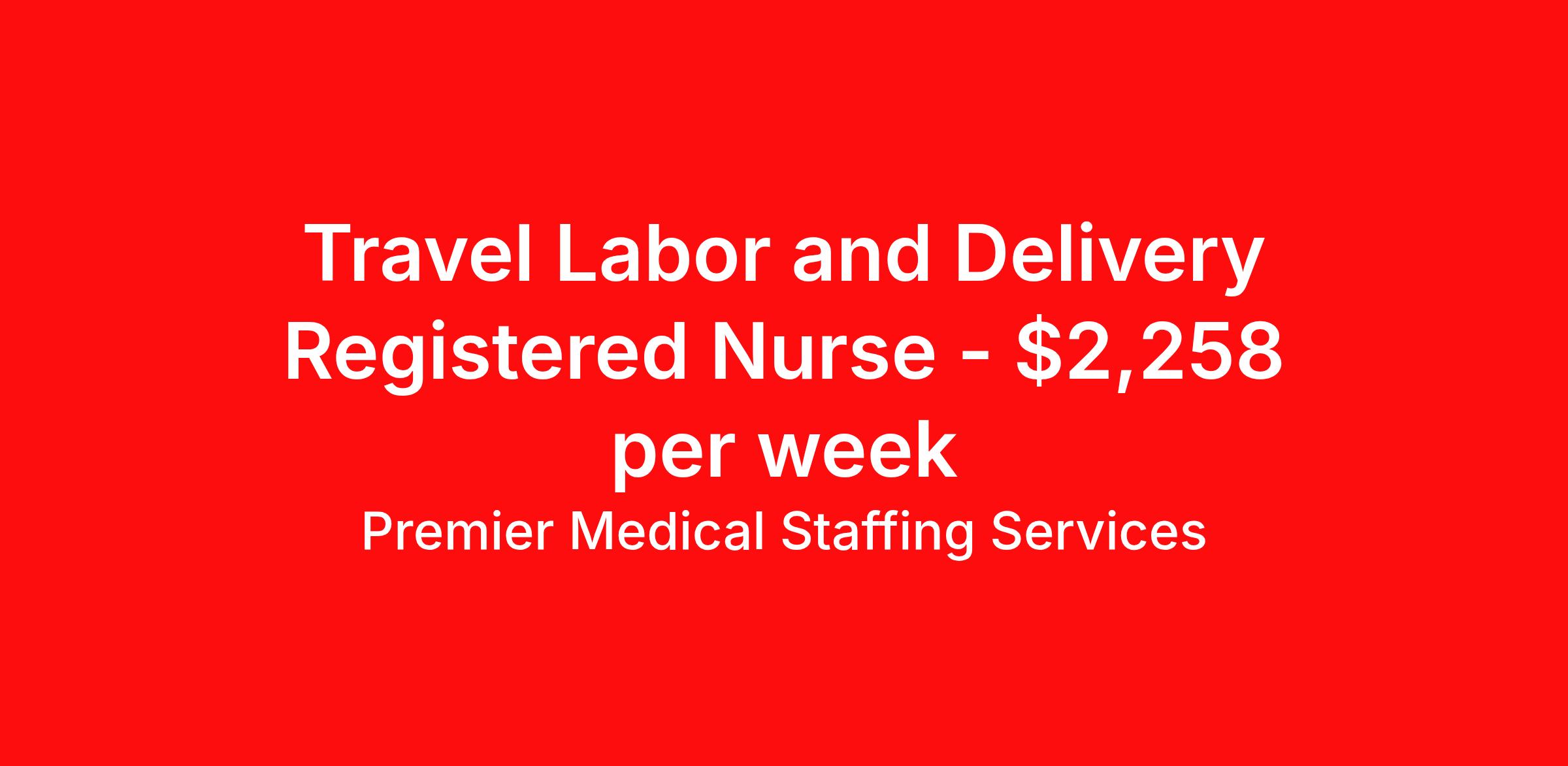 Premier Medical Staffing Services is seeking a travel nurse RN Labor and Delivery for a travel nursing job in Davenport, Iowa. Job Description & Requirements Specialty: Labor and Delivery Discipline: RN Start Date: 03/30/2026 Duration: 12 weeks 36 hours per week Shift: 12 hours Employment Type: Travel Premier Medical Staffing Job ID 622643. Pay package is based on 12 hour shifts and 36 hours per week (subject to confirmation) with tax-free stipend amount to be determined. Posted job title: RN L&D About Premier Medical Staffing Services Premier Medical Staffing Services, LLC is a nationally expanding healthcare staffing firm for healthcare professionals and companies. We understand our clients’ need for highly qualified, expertly trained medical professionals and are passionate about helping clinicians find employment opportunities that fit their personality and needs. Able to accommodate the ever-changing needs of the healthcare landscape, we offer per-diem, contract and direct hire placements to support the unique needs of each industry sector. Premier Medical Staffing Services is Joint Commission Certified, a Military Spouse Employment Partner and is certified as a Women’s Business Enterprise. We are proudly nurse owned.
