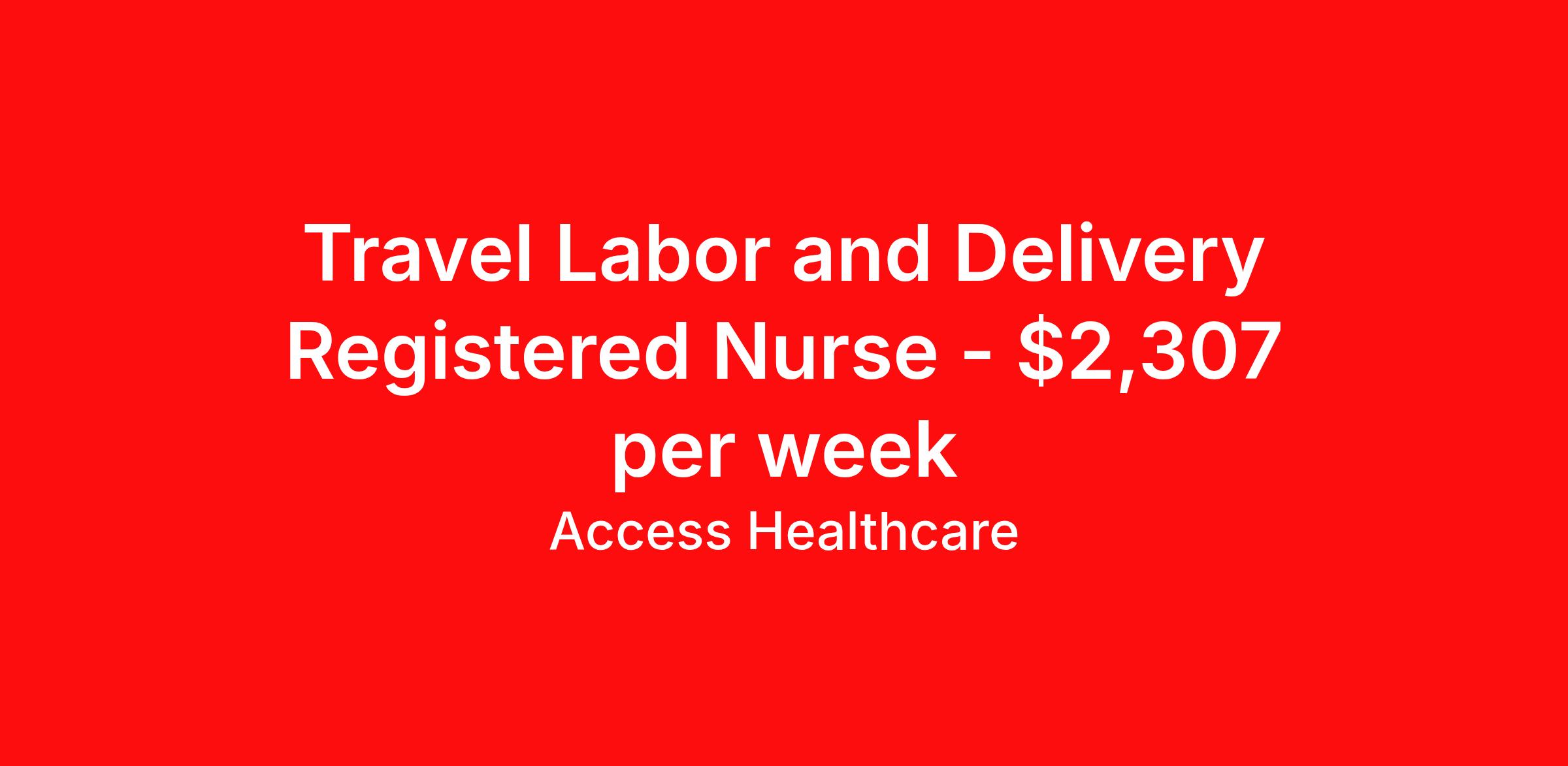 Access Healthcare is seeking a travel nurse RN Labor and Delivery for a travel nursing job in Attleboro, Massachusetts. Job Description & Requirements Specialty: Labor and Delivery Discipline: RN Start Date: 04/06/2026 Duration: 10 weeks 36 hours per week Shift: 12 hours, nights Employment Type: Travel Access Healthcare Job ID 76087872. Pay package is based on 12 hour shifts and 36 hours per week (subject to confirmation) with tax-free stipend amount to be determined. About Access Healthcare Access Healthcare aims to provide superior service to our nursing family by providing around the clock support, competitive pay packages and an unmatched benefits package! Unlike other agencies, we offer a true family feel and work with you to find the placement that is right for you. We offer one of the top leading pay packages in the industry and we are ready to get you the money you deserve! Access Healthcare was founded by two travel nurses, Danielle and Diego, who had a dream and a shared vision of creating an agency which all nurses would want to work with. Our passion has led us to where we are today as one of the top 10 agencies in our home state of New Jersey, with access to contracts in all 50 states! We encourage you to join our team and we cannot wait to get to know you!
