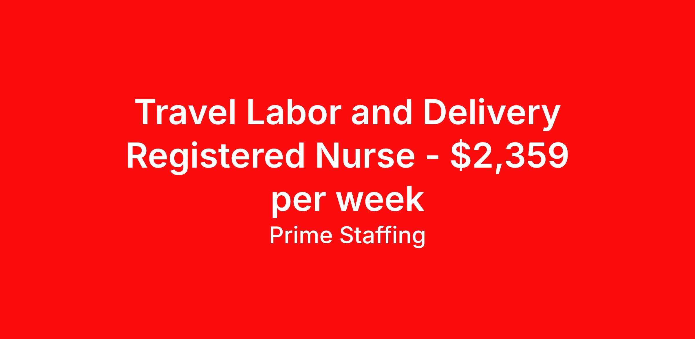 Travel Labor and Delivery Registered Nurse - $2,359 per week