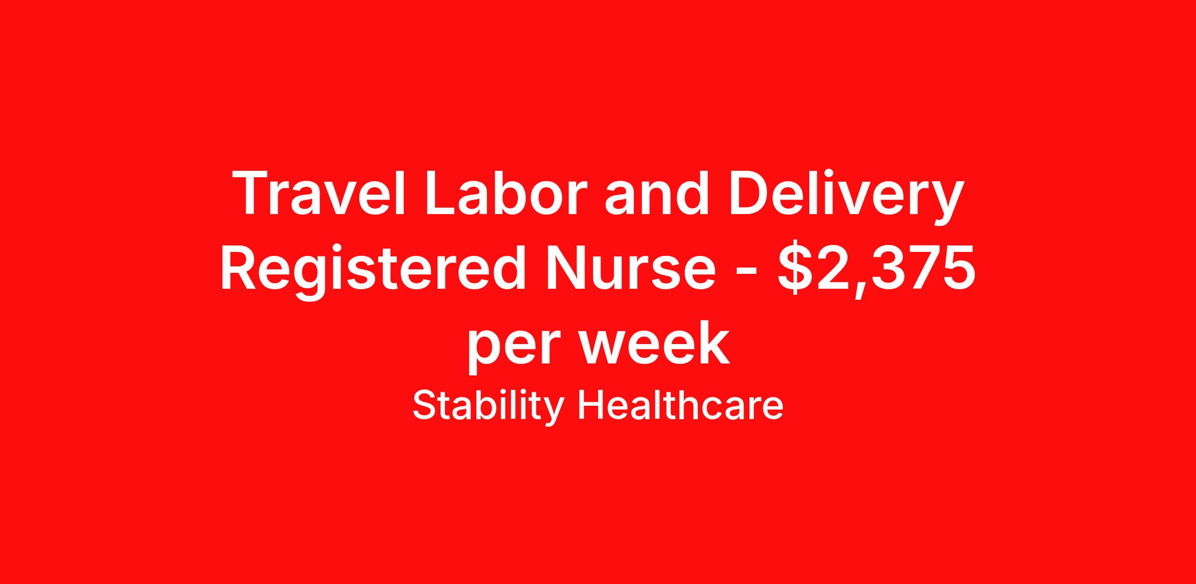 Stability Healthcare is seeking a travel nurse RN Labor and Delivery for a travel nursing job in Wausau, Wisconsin. Job Description & Requirements Specialty: Labor and Delivery Discipline: RN Start Date: 05/25/2026 Duration: 6 weeks 36 hours per week Shift: 12 hours, nights Employment Type: Travel Stability Healthcare is looking for a L&D RN contract position in Wausau, WI. Labor and Delivery (L&D) Nurses care for women during labor and childbirth, monitoring the baby and the mother, coaching mothers and assisting doctors. As a L&D Nurse, you'll prepare women, and their families, for the stages of giving birth and help patients with breastfeeding after the baby is born. *$600 travel bonus *Day 1 health insurance with United Healthcare *PTO plan start accruing on day 1, use during contract or cash out at the end! *Guaranteed stipend if facility calls you off *Extra hour bonus earn an additional hourly bonus for working over your weekly contracted hours Stability Job ID 822613. Pay package is based on 12 hour shifts and 36 hours per week (subject to confirmation) with tax-free stipend amount to be determined. Posted job title: L&D About Stability Healthcare Stability Healthcare was founded in 2009, with the mission of becoming the best Travel Nursing Agency in California. We have been rated one of the top travel nursing agencies and offer our nurses the highest paying travel nursing jobs available. We have access to the best travel assignments from 1000’s of facilities. You can start the year off in sunny California, spend the Spring in the Colorado Rockies, enjoy the Summer in the Mid-West, experience the change of seasons in Boston and New York, and hit the beaches of Florida in the winter. Our Nurses work in the best hospitals and health systems in the country. Benefits Guaranteed Hours Benefits start day 1