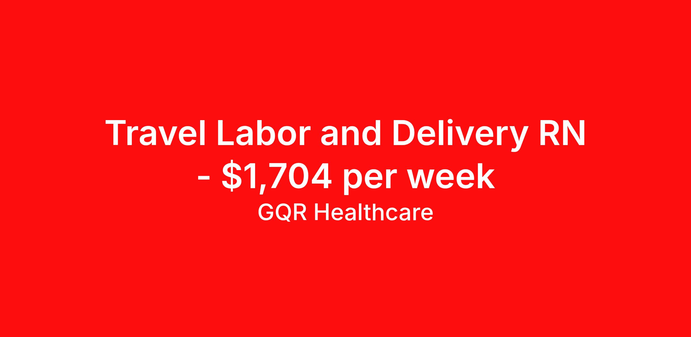 GQR Healthcare is seeking a travel nurse RN Labor and Delivery for a travel nursing job in Carmel, Indiana. Job Description & Requirements Specialty: Labor and Delivery Discipline: RN Start Date: 05/17/2026 Duration: 13 weeks 36 hours per week Shift: 12 hours, nights Employment Type: Travel Contract - W2 Labor and Delivery Registered Nurse (RN) Job Location: Carmel, Indiana Start Date: May 17, 2026 Profession: Registered Nurse (RN) Facility: Estimated Pay: $1703.65 - $1798.65 Duration:13 weeks Specialty:Labor and Delivery Shift: Night Shift Details: null Night Job Type: Travel *Estimated weekly pay includes projected hourly wages and weekly meal and lodging per diems for eligible clinicians based on nationally published GSA rates. Actual weekly pay and per diems may differ from the amount shown and are subject to change during an assignment. Benefits: Day 1 Insurance Cigna medical, MetLife dental and vision insurance License reimbursement for new licenses needed for each assignment Discounts with hotels and rental cars A dedicated recruiter and support team that will help you every step of the way to sure you start on time and have an exceptional experience Referral bonus up to $700 About the Company: Finding the right role is about more than just matching skills to a job—it’s about aligning with your goals, values, and the way you want to work. As an award-winning talent partner, we support healthcare professionals through every step of that process, offering meaningful opportunities, clear guidance, and long-term partnership. From our first conversation to your first day on the job (and beyond!), we’re here to help you move forward with confidence. GQR Job ID 798646. Pay package is based on 12 hour shifts and 36 hours per week (subject to confirmation) with tax-free stipend amount to be determined. Posted job title: Registered Nurse (RN) About GQR Healthcare GQR’s Healthcare team specializes in connecting experts within the industry to highly skilled healthcare professionals across the US market. In the competitive healthcare market, we recognize that the industry’s common goals of improved quality of care and patient outcomes are wholly reliant upon the professionals directly supporting these initiatives. Leveraging our extensive candidate network, we deliver continuity of care for the communities our partners serve to ensure the patient experience is of the highest quality. Through deep market specialization and a unique approach to talent acquisition, GQR Healthcare provides an unparalleled and personalized experience across all medical specialties in nursing and within diverse healthcare platforms across the industry.