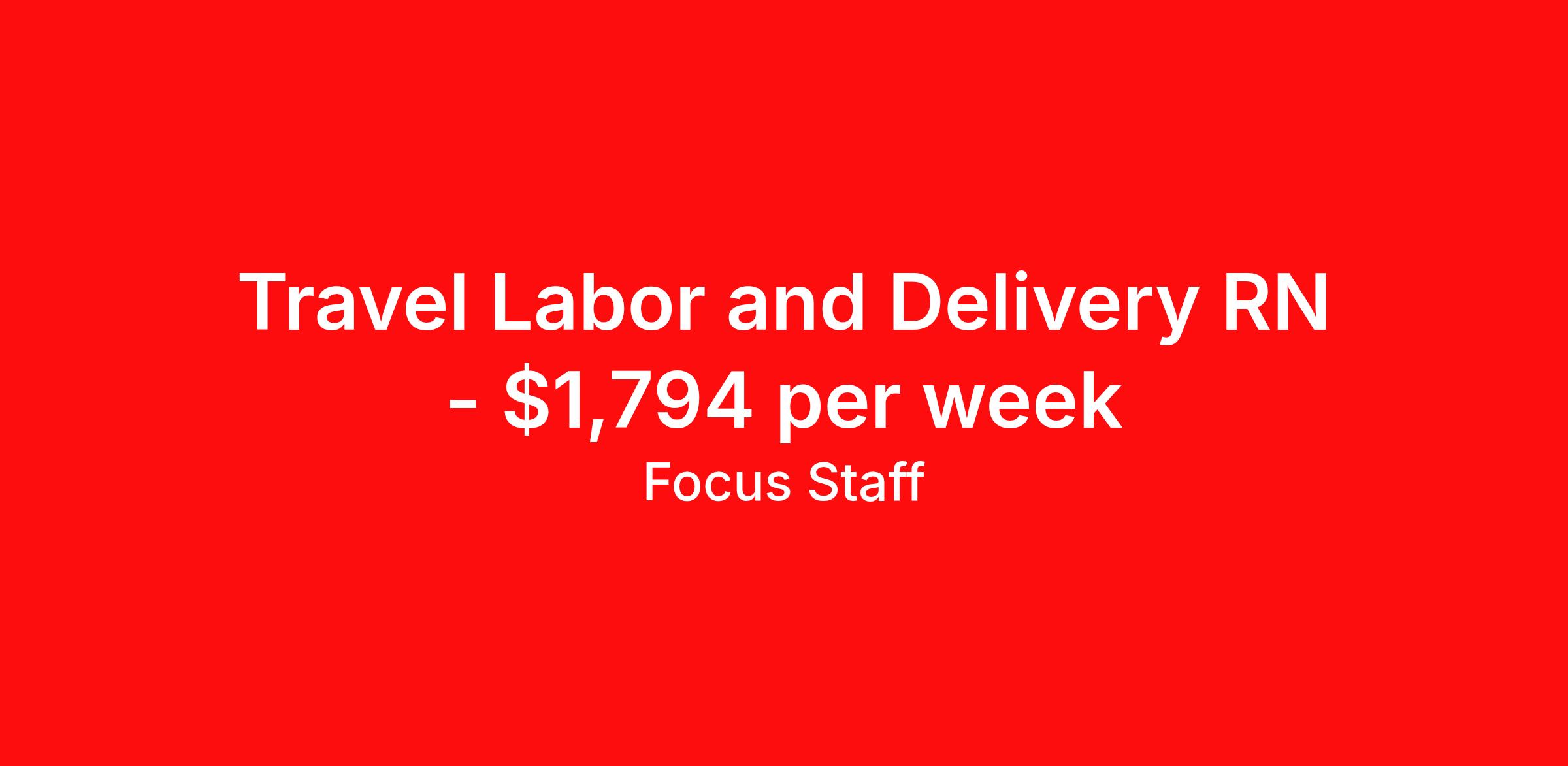 Focus Staff is seeking a travel nurse RN Labor and Delivery for a travel nursing job in Waco, Texas. Job Description & Requirements Specialty: Labor and Delivery Discipline: RN Start Date: 04/26/2026 Duration: 13 weeks 36 hours per week Shift: 12 hours, nights Employment Type: Travel Start your next rewarding travel Labor and Delivery (L&D) RN assignment with Focus Staff in Waco, TX. Bring your expertise and passion for maternal and newborn care to diverse environments, where you will provide exceptional support and care to expectant mothers and their families. Design your travel nurse career path, one delivery at a time. Contract Length: 13 Start Date: 04/26/2026 Shift: 3x12 Nights Why L&D Nurses choose Focus Staff: Rewarding Your Commitment : Weekly direct deposits, housing stipends, 401(k) with matching, and loyalty/referral bonuses. Your Wellbeing, Our Priority : Medical, dental, vision, and life insurance from day one, no waiting period. Journey Made Simple : Travel assistance, relocation support, licensure reimbursement, and exclusive hotel discounts. Flexibility Meets Support : Dedicated recruiters, 24/7 support, flexible scheduling, and pet-friendly accommodations. Labor & Delivery RN Requirements: Minimum of 1-2 years of experience in a cardiac catheterization lab setting. Valid Registered Nurse (RN) license in the state of practice Current Basic Life Support (BLS) and Advanced Cardiac Life Support (ACLS) certification. About Focus Staff: Focus Staff is a traveler-first healthcare staffing agency connecting talented travel nurses and allied health professionals with top assignments nationwide, prioritizing your unique needs and giving you complete control over your journey. Our mission is to help you create the life you love while exploring the country, advancing your healthcare career with competitive pay, and doing what you do best, providing exceptional patient care that makes a difference. Interested in becoming a traveler with Focus Staff? Discover why travelers choose us, apply today! Job Type: Contract/Temporary/Travel Location: Waco, TX Date Posted: 03/19/2026 07:54:00 AM Valid Through: 07/25/2026 Job City: Waco Job State: TX Job Country: USA Shift: 3x12 Nights Job ID: a0xVt00000K2NGPIA3 Hiring Organization: Focus Staff Focus Staff is an EEO/AA (Equal Employment Opportunity and Affirmative Action) Employer. *Estimated pay package based on bill rate at time job was posted. Bill rates can change frequently and without notice. Exact pay package may vary based on several factors, including, but not limited to, guaranteed hours, travel distance, demand, experience, etc. Focus Staff Job ID a0xVt00000K2NGPIA3. Pay package is based on 12 hour shifts and 36 hours per week (subject to confirmation) with tax-free stipend amount to be determined. Posted job title: Travel L&D RN - Labor & Delivery Registered Nurse About Focus Staff Your Journey, Our Focus. Travel Confidently, Care Boldly with Focus Staff. At Focus Staff, we’re here to make your travel healthcare career rewarding, seamless, and stress-free. Whether you’re a travel nurse, therapist, or allied health professional, we take care of the details so you can focus on what you do best — caring for others. Our mission is simple: to help healthcare heroes like you thrive, no matter where your journey takes you. With thousands of job opportunities across all 50 states, our dedicated recruiters work closely with you to match you to the right assignment, based on what matters most to you — pay, location, benefits, or career growth. From day one, you’ll enjoy premium benefits like medical coverage that bridges between assignments, 401K matching, travel and licensing reimbursements, and personalized housing support. Plus, our team is here for you 24/7, with clinical support available whenever you need guidance or backup. At Focus Staff, we believe in making every assignment a smooth, comfortable, and empowering experience. Let’s make your next adventure your best one yet.