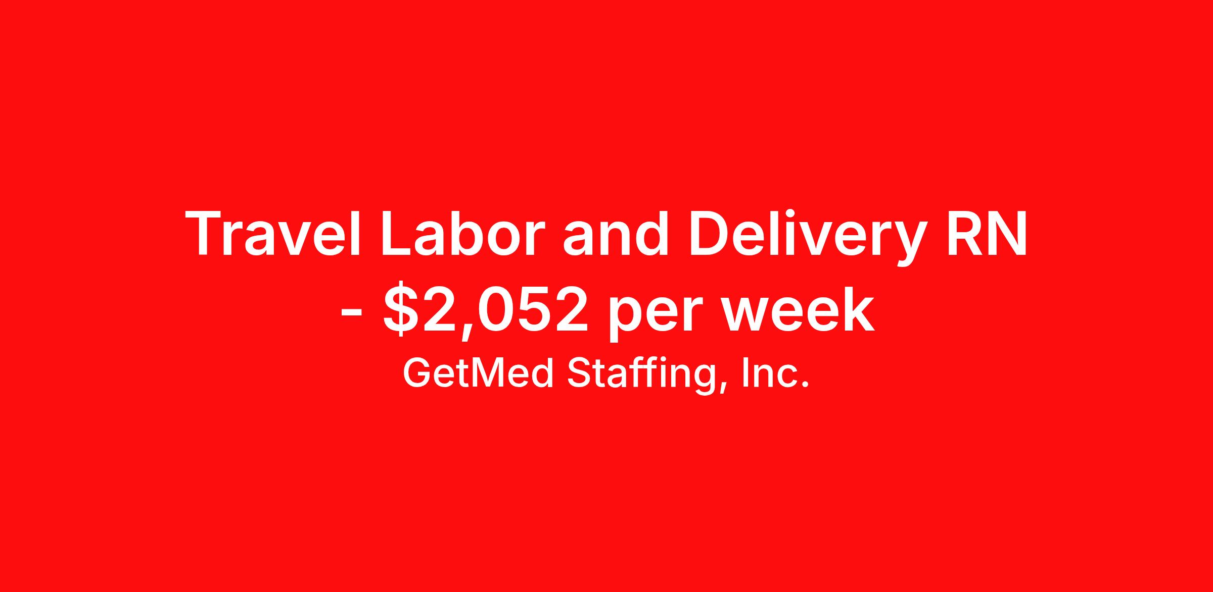 GetMed Staffing, Inc. is seeking a travel nurse RN Labor and Delivery for a travel nursing job in Fullerton, California. Job Description & Requirements Specialty: Labor and Delivery Discipline: RN Start Date: 04/07/2026 Duration: 13 weeks 36 hours per week Shift: 12 hours, nights Employment Type: Travel GetMed Staffing is searching for a strong L&D RN to assist our traveler-friendly client. A minimum of 1-2 years of experience is required. Traveling with GetMed Staffing offers the unique opportunity to gain diverse experiences, both personally and professionally. Gain experience that matters. GetMed Staffing, Inc. Job ID 36172105. Pay package is based on 12 hour shifts and 36.0 hours per week (subject to confirmation) with tax-free stipend amount to be determined. Posted job title: RN:L&D,19:00:00-07:00:00 About GetMed Staffing, Inc. We are a diversity owned company, specializing in healthcare recruiting services. We truly understand how important a healthcare travelers' relationship is with their recruiter, as well as our relationship is with our healthcare facilities. We recognize that the needs of our healthcare travelers can vary, and therefore we provide the personalized touch necessary to ensure a successful travel assignment each and every time. Our healthcare facilities and clients benefit from us putting our healthcare travelers first. GetMed Staffing is excited to be a leader within the industry by focusing on providing healthcare travelers with more choices and possibilities as they plan for their next healthcare travel assignment. Benefits Life insurance Medical benefits Dental benefits Vision benefits 401k retirement plan