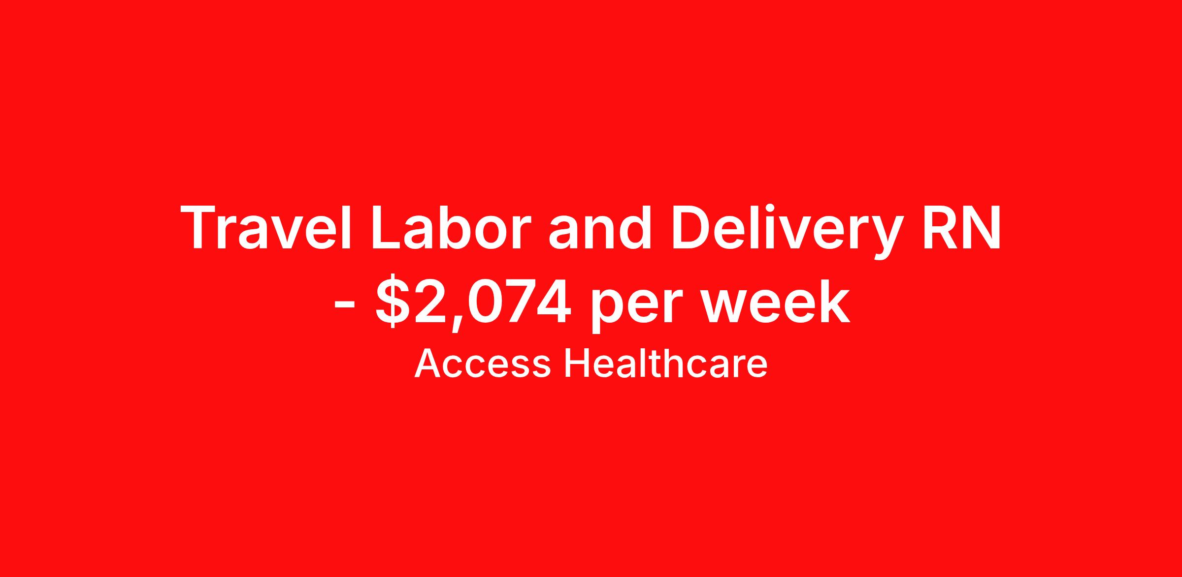 Access Healthcare is seeking a travel nurse RN Labor and Delivery for a travel nursing job in Corpus Christi, Texas. Job Description & Requirements Specialty: Labor and Delivery Discipline: RN Start Date: 04/06/2026 Duration: 13 weeks 36 hours per week Shift: 12 hours, nights Employment Type: Travel Access Healthcare Job ID 76333691. Pay package is based on 12 hour shifts and 36 hours per week (subject to confirmation) with tax-free stipend amount to be determined. About Access Healthcare Access Healthcare aims to provide superior service to our nursing family by providing around the clock support, competitive pay packages and an unmatched benefits package! Unlike other agencies, we offer a true family feel and work with you to find the placement that is right for you. We offer one of the top leading pay packages in the industry and we are ready to get you the money you deserve! Access Healthcare was founded by two travel nurses, Danielle and Diego, who had a dream and a shared vision of creating an agency which all nurses would want to work with. Our passion has led us to where we are today as one of the top 10 agencies in our home state of New Jersey, with access to contracts in all 50 states! We encourage you to join our team and we cannot wait to get to know you!