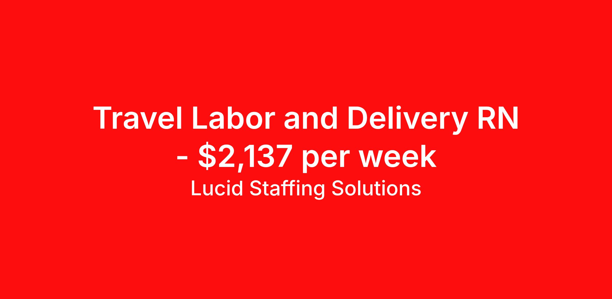 Lucid Staffing Solutions is seeking a travel nurse RN Labor and Delivery for a travel nursing job in Henderson, North Carolina. Job Description & Requirements Specialty: Labor and Delivery Discipline: RN Duration: 13 weeks 36 hours per week Shift: 12 hours, nights Employment Type: Travel Job Description Position: Travel Registered Nurse (RN) with experience in L&D Location: Henderson, North Carolina Shift: 12hr Night Weekly Gross: $2137.00 Lucid Staffing Solutions was created by former healthcare workers who lived the short staffing, the chaotic workflows, and the nonstop pressure that comes with patient care. We built an agency powered by real clinical experience, kept simple and supportive, so you never have to guess whether the people guiding you actually know what they’re talking about. Minimum Requirements: Active license as a Registered Nurse (RN) Licensed in North Carolina (If applicable) or compact eligible Two years of recent L&D experience Active BLS Why Lucid Works for Travelers Paid Weekly: Stipends pushed to GSA limits whenever possible $500 Travel Reimbursement: Paid at the start of each assignment Clinician-Led Team: Recruiters and Account Managers with real clinical experience In-House Compliance: fast updates, real communication, and none of the delays that come with outsourced vendors. Health Coverage Options: Multiple medical plans plus dental, vision, and workers compensation 401(k) Match: 4 percent match after 6 months License & Certification Reimbursement: We help cover the cost of staying compliant Liability Insurance: Included automatically Referral Bonuses: $500 per referral, $750 after five referrals Ready to start your journey? Apply today to connect with a Clinician-Recruiter! Lucid Staffing Solutions Job ID 37249. Pay package is based on 12 hour shifts and 36 hours per week (subject to confirmation) with tax-free stipend amount to be determined. Posted job title: L&D About Lucid Staffing Solutions Clinician Owned & Operated At Lucid Staffing Solutions, we do things differently—because we’ve been in your shoes. Founded by actual healthcare professionals, Lucid was built to fix the issues we experienced as travelers. We know what makes a great assignment: competitive pay, seamless onboarding, honest recruiters, and most importantly—working with a team that truly sees and supports you. Our entire team is made up of former clinicians who understand the demands of the job and what travelers truly need to succeed. We offer some of the highest paying allied health and nursing contracts across the country, along with some amazing benefits & perks. Whether you're chasing freedom, flexible schedules, bigger paychecks, or your next adventure, Lucid helps you get there—with real support, real respect , and real healthcare experts. Benefits Dental benefits Medical benefits Vision benefits