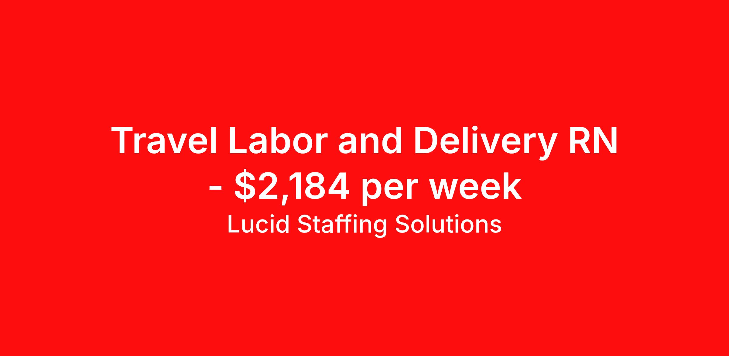 Lucid Staffing Solutions is seeking a travel nurse RN Labor and Delivery for a travel nursing job in Rutherfordton, North Carolina. Job Description & Requirements Specialty: Labor and Delivery Discipline: RN Duration: 13 weeks 36 hours per week Shift: 12 hours, nights Employment Type: Travel Job Description Position: Travel Registered Nurse (RN) with experience in L&D Location: Rutherfordton, North Carolina Shift: 12hr Night Weekly Gross: $2183.80 Lucid Staffing Solutions was created by former healthcare workers who lived the short staffing, the chaotic workflows, and the nonstop pressure that comes with patient care. We built an agency powered by real clinical experience, kept simple and supportive, so you never have to guess whether the people guiding you actually know what they’re talking about. Minimum Requirements: Active license as a Registered Nurse (RN) Licensed in North Carolina (If applicable) or compact eligible Two years of recent L&D experience Active BLS Why Lucid Works for Travelers Paid Weekly: Stipends pushed to GSA limits whenever possible $500 Travel Reimbursement: Paid at the start of each assignment Clinician-Led Team: Recruiters and Account Managers with real clinical experience In-House Compliance: fast updates, real communication, and none of the delays that come with outsourced vendors. Health Coverage Options: Multiple medical plans plus dental, vision, and workers compensation 401(k) Match: 4 percent match after 6 months License & Certification Reimbursement: We help cover the cost of staying compliant Liability Insurance: Included automatically Referral Bonuses: $500 per referral, $750 after five referrals Ready to start your journey? Apply today to connect with a Clinician-Recruiter! Lucid Staffing Solutions Job ID 36716. Pay package is based on 12 hour shifts and 36 hours per week (subject to confirmation) with tax-free stipend amount to be determined. Posted job title: L&D About Lucid Staffing Solutions Clinician Owned & Operated At Lucid Staffing Solutions, we do things differently—because we’ve been in your shoes. Founded by actual healthcare professionals, Lucid was built to fix the issues we experienced as travelers. We know what makes a great assignment: competitive pay, seamless onboarding, honest recruiters, and most importantly—working with a team that truly sees and supports you. Our entire team is made up of former clinicians who understand the demands of the job and what travelers truly need to succeed. We offer some of the highest paying allied health and nursing contracts across the country, along with some amazing benefits & perks. Whether you're chasing freedom, flexible schedules, bigger paychecks, or your next adventure, Lucid helps you get there—with real support, real respect , and real healthcare experts. Benefits Dental benefits Medical benefits Vision benefits