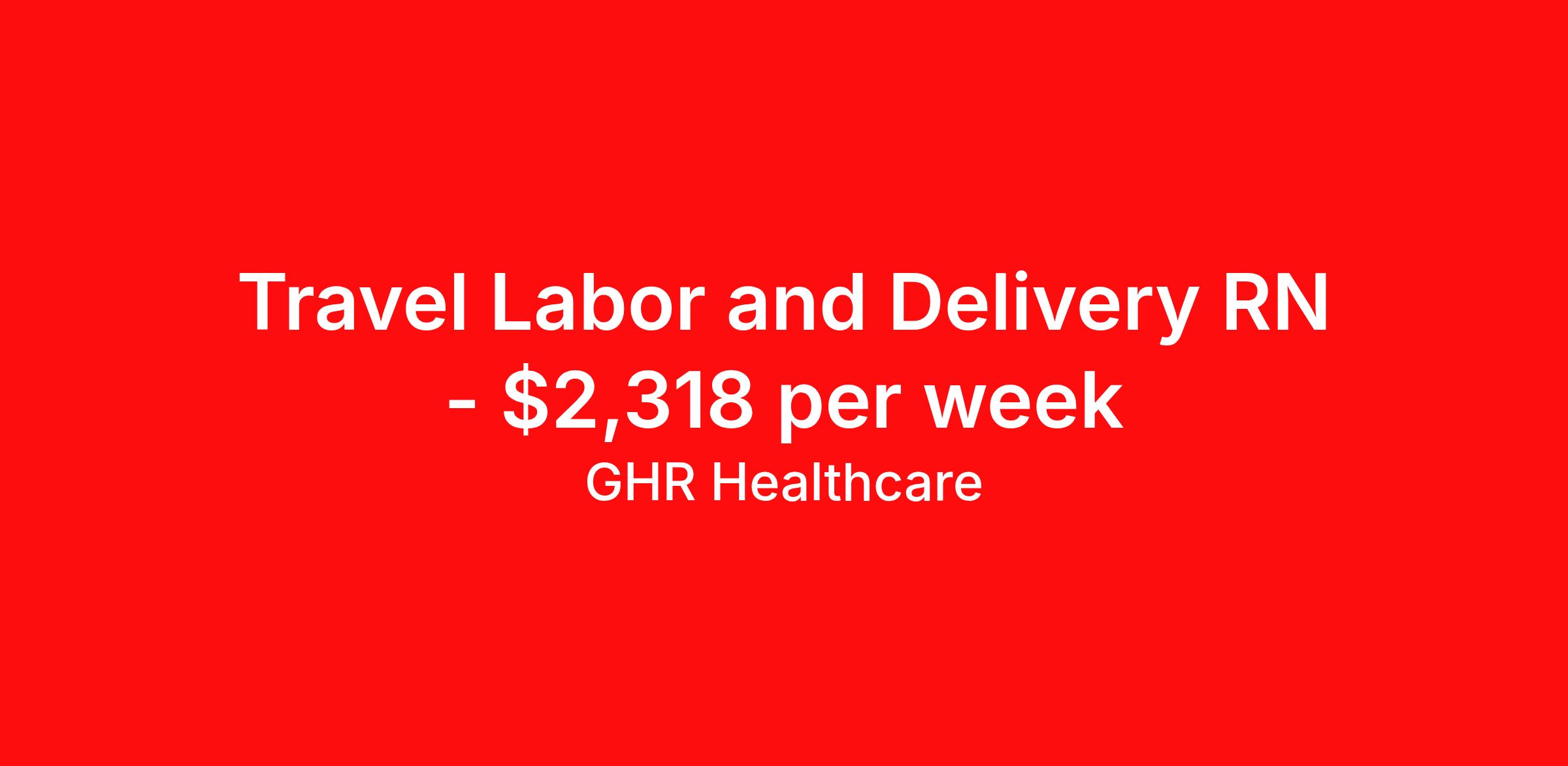 GHR Healthcare is seeking a travel nurse RN Labor and Delivery for a travel nursing job in Davenport, Iowa. Job Description & Requirements Specialty: Labor and Delivery Discipline: RN Start Date: 03/30/2026 Duration: 12 weeks 36 hours per week Shift: 12 hours Employment Type: Travel GHR Healthcare Job ID 76022195. Pay package is based on 12 hour shifts and 36 hours per week (subject to confirmation) with tax-free stipend amount to be determined. About GHR Healthcare For over 30 years, GHR Healthcare has been the bridge between healthcare professionals and the facilities that need them nationwide. We're committed to uncovering your ideal fit, supported by GHR's dedication to competitive compensation, transparent communication, and a devoted team that genuinely cares about your career journey. You can trust us to stand by your side as your advocate, confidante, and partner in advancing your career. At GHR, care and consideration are at the heart of everything we do. Visit ghrhealthcare.com to learn more.