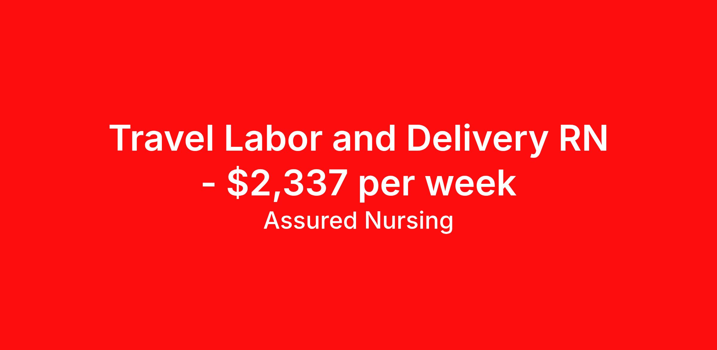 Assured Nursing is seeking a travel nurse RN Labor and Delivery for a travel nursing job in Newton Lower Falls, Massachusetts. Job Description & Requirements Specialty: Labor and Delivery Discipline: RN Start Date: 05/03/2026 Duration: 13 weeks 36 hours per week Shift: 12 hours, days, nights, rotating Employment Type: Travel 36hr Rotating Day/Night (7a-7:30p or 7:15p-7:15a)- rotating is based on needs of the unit and not guaranteed, every other weekend and rotating holidays Labor and Delivery experience is required. Assured Nursing Job ID 36485225. Pay package is based on 12 hour shifts and 36.0 hours per week (subject to confirmation) with tax-free stipend amount to be determined. Posted job title: RN:L&D,19:00:00-07:00:00 Benefits Weekly pay Holiday Pay 401k retirement plan Referral bonus Medical benefits Dental benefits Vision benefits