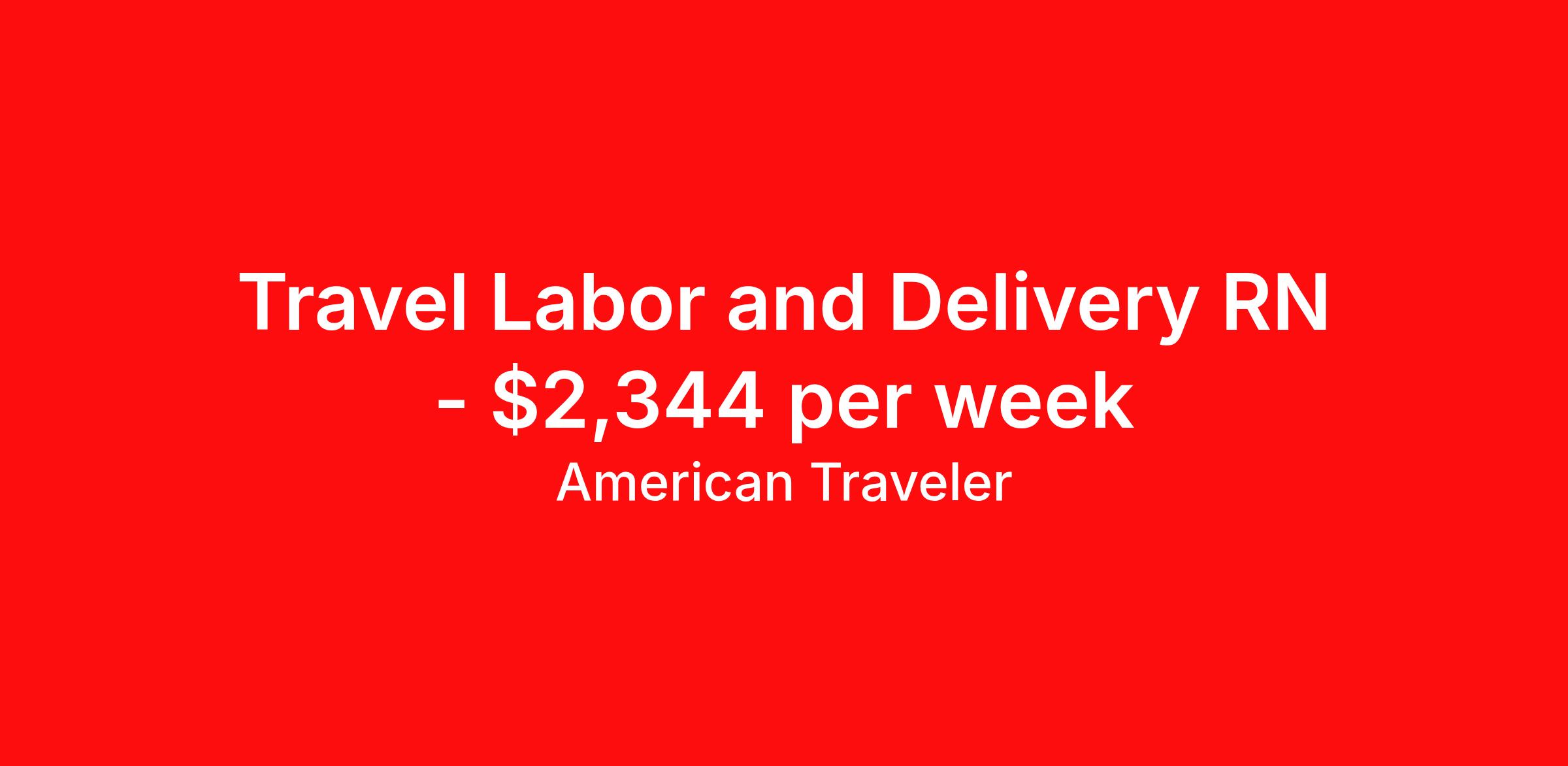 American Traveler is seeking a travel nurse RN Labor and Delivery for a travel nursing job in Pueblo, Colorado. Job Description & Requirements Specialty: Labor and Delivery Discipline: RN Start Date: 03/30/2026 Duration: 13 weeks 36 hours per week Shift: 12 hours, nights Employment Type: Travel Assignment Overview Shift: Nights, 3x12hrs Hours: 36 hrs/wk Start Date: Mar 30, 2026 Length: 13 weeks Openings: 2 Description American Traveler is seeking an experienced RN for a fast-paced Labor & Delivery position requiring a CO or compact RN license and a minimum of 2 years of L&D experience. Details Women's and Infants Labor & Delivery unit with 14 staffed beds High-volume unit averaging 150 births per month Patient ratio of 1:2 Night shift schedule: 3x12-hour shifts, 17:45–06:15, on various days of the week Weekend shifts required per unit needs On-call required per unit needs Charting via Epic Navy scrub color required Requirements Active CO RN license or compact RN license required Minimum 2 years of Labor & Delivery experience required Required certifications: AHA BLS, ACLS, NRP, and AWHONN Intermediate Fetal Monitoring Experience with OB triage required Experience managing laboring and high-risk OB patients required Ability to circulate in the OR and place internal monitors required Epic EMR experience preferred Additional Information Responsibilities include managing laboring and high-risk OB patients, circulating in the OR, placing internal monitors, and providing OB triage care Candidates residing within 75 miles of the facility are eligible as local candidates First-time travelers are welcome to apply, provided all experience requirements are met American Traveler Job ID P-681398. Pay package is based on 12 hour shifts and 36 hours per week (subject to confirmation) with tax-free stipend amount to be determined. Posted job title: Travel RN - Labor & Delivery About American Traveler With over 25 years of experience, American Traveler has established a reputation for outstanding customer service. Our team ensures a smooth, worry-free experience for those starting on or expanding their travel nursing and allied careers. With thousands of travel nursing and allied jobs nationwide, our attentive and approachable recruiters find positions that align perfectly with your career aspirations and personal requirements. American Traveler offers exceptional benefits, including premium medical, dental, vision and life insurance beginning day one of your assignment, generous 401(k) match, substantial housing stipends, and more. Additionally, with 24/7 support and access to our in-house clinicians, you are assured confidence and comfort throughout your assignment. With our team behind you, you can relax and enjoy a rewarding travel career.