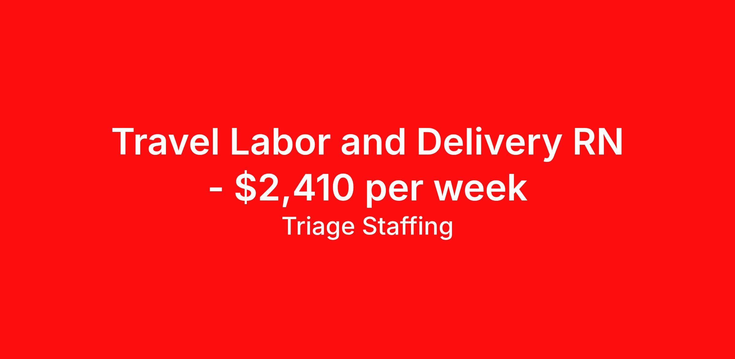 Triage Staffing is seeking a travel nurse RN Labor and Delivery for a travel nursing job in Midland, Texas. Job Description & Requirements Specialty: Labor and Delivery Discipline: RN Start Date: 04/27/2026 Duration: 16 weeks 36 hours per week Shift: 12 hours, nights Employment Type: Travel Travel Nursing: Labor and Delivery Midland, TX Location: Midland, TX Start Date: 4/27/2026 Shift Details: 12H Nights 36 hours per week Length: 16 WEEKS Apply for specific facility details.L&D RN Triage Staffing Job ID QCD74F3D. Posted job title: Nursing: Labor and Delivery About Triage Staffing At Triage, we prefer to be real . Real about expectations—both ours and yours. Real about how a decision you make today could affect your tomorrows. Real about how compensation actually works. Real about how great—or grating—your next supervisor may be. Being real allows everyone at Triage to be ready . Ready to serve you with real honesty. So if that gig near the ocean is really no day at the beach, or that third shift comes with a second-class rate, we tell you. So you can be ready, too. We staff all five major divisions of acute care—nursing, lab, radiology, cardiopulmonary and rehab therapy, offering: - Competitive, custom pay packages - One point of contact for both travelers and facilities (per division) - A reliable recruiter who's got your back throughout your entire assignment - In-house compliance and accounting specialists - A clinical liaison team available 24/7 to offer medical and professional support and career development - A mentoring program that is run and managed by actual clinicians—yeah, you read that right - And more (because of course there’s more) Are we the biggest? No. Are we the best? That’s rather subjective, but we’re trying to be. Will we work like hell to get you as close to your idea of heaven as possible? Yes. Yes, we will. Benefits: Day One comprehensive, nationwide insurance plans for health, vision and dental and life—including a HSA option Day One 401(k) program with employer-matching contributions once eligible Facility cancelling protection—your time is money on and off-the-clock Guaranteed hours Weekly paychecks via direct deposit Earned vacation bonuses for time worked Paid holidays Employee assistance program (EAP)—your mental health is important, too Continuing education, certification and licensing reimbursement Workers comp—because accidents happen Top-rated professional liability insurance Company provided housing options Referral bonus—$750 in your pocket after they’ve completed a 13-week assignment