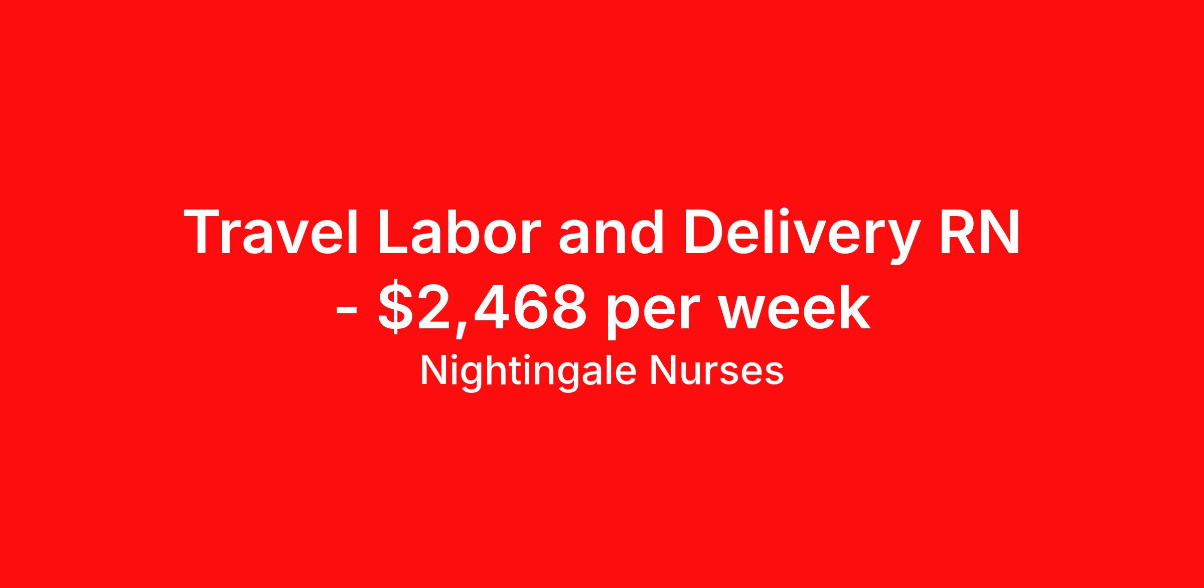 Nightingale Nurses is seeking a travel nurse RN Labor and Delivery for a travel nursing job in Tulsa, Oklahoma. Job Description & Requirements Specialty: Labor and Delivery Discipline: RN Start Date: 03/23/2026 Duration: 13 weeks 48 hours per week Shift: 12 hours, days Employment Type: Travel About Nightingale Nurses the first name in travel nursing You may not realize it, but as an RN with real world hospital experience, you are legendary. To the lives you’ve helped save, the patients you’ve cared for, and to the hospitals where you’ve done it. And you’re just getting started. Legendary is where Nightingale begins. We’re the first name in travel nursing, representing only the very best RNs. That’s why hospitals prefer us, allowing us to offer exceptional travel nursing assignments all over the US, as well as the highest pay rates and most extensive benefits in the industry. Nightingale facilitates every aspect of your travel nursing assignment, so you can focus on doing what you do best. We want you to grow, explore, and enjoy unrivaled liberty, the freedom to nurse.