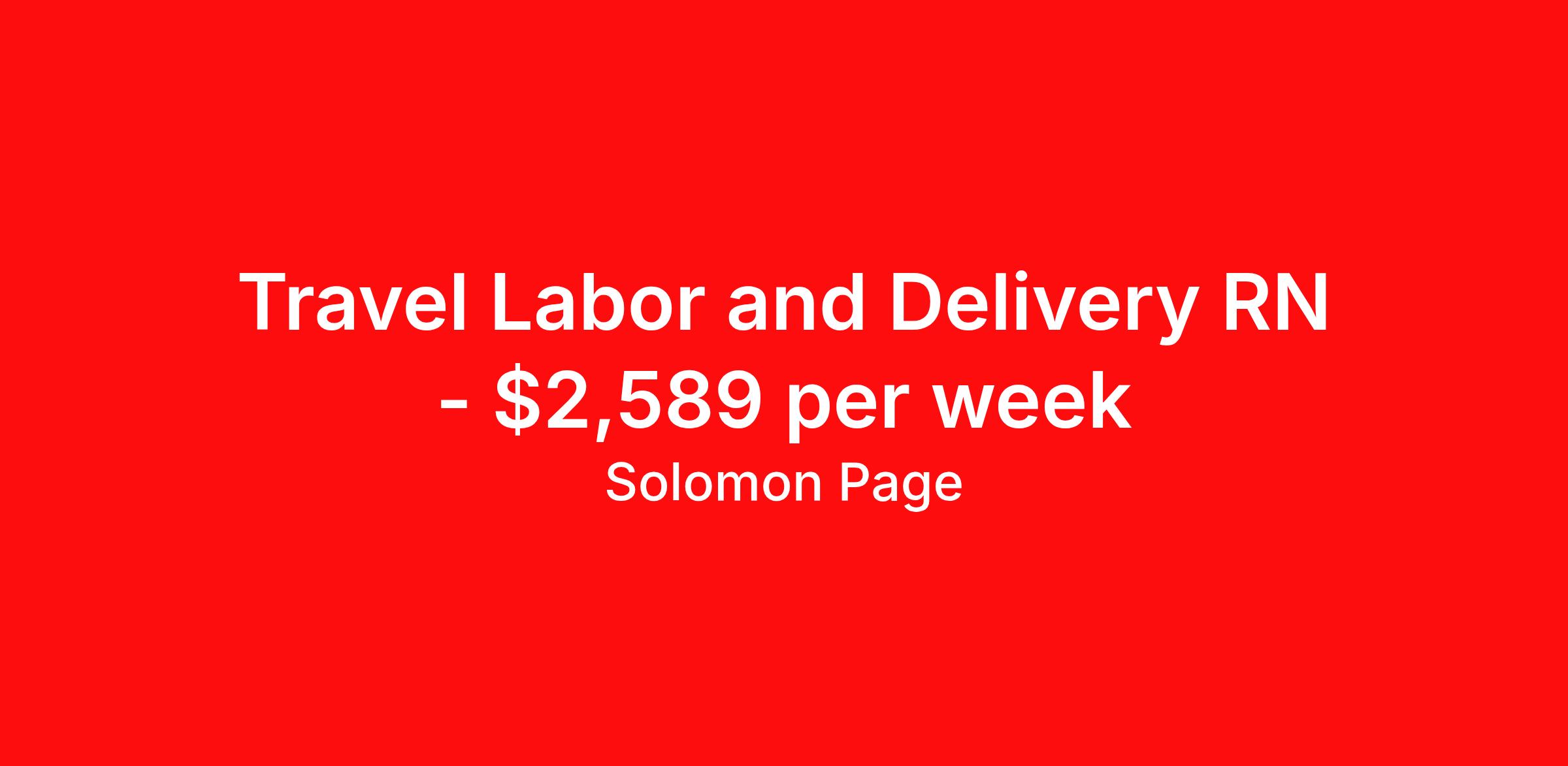 Solomon Page is seeking a travel nurse RN Labor and Delivery for a travel nursing job in Mission Hills, California. Job Description & Requirements Specialty: Labor and Delivery Discipline: RN Start Date: 04/06/2026 Duration: 13 weeks 36 hours per week Shift: 12 hours, nights Employment Type: Travel Our client is looking to add a Registered Nurse to their team. Job Details: Location: Mission Hills, California Duration: 13 Weeks Start Date: 04/06/2026 Shift: 3x12 Nights Qualifications: Current California license Excellent interpersonal skills including patience, empathy, and compassion Effective communication skills, including active listening, writing, speaking and reading comprehension Fast and adaptive problem-solving abilities Ability to stand for long periods of time If you meet the required qualifications and are interested in this role, please apply today. Why Work with Us The success of Solomon Page is defined by our people. Offering a comprehensive benefits package, travel nurses have immediate access to medical coverage and ReviveHealth virtual care. Additionally, you are offered access to dental and vision coverage, commuter benefits, a 401(k) plan, flexible spending, referral bonuses, ongoing training, and more. As an ESOP company, Solomon Page offers an employee stock ownership plan to all consultants. As a member of our traveler community, you will join a nurturing culture that fosters your career goals. Solomon Page can connect you with your next opportunity – whether it is in your hometown, or you are looking to travel to a new destination. About Solomon Page Healthcare & Medical Staffing Accredited by the Joint Commission with the Gold Seal of Approval, Solomon Page prides ourselves in developing long-term relationships with healthcare providers based on trust and respect. Our experienced Healthcare and Medical Staffing experts are committed to providing safe and quality patient care through our wide network of travel nurses, locum tenens, and allied resources. For more information and additional healthcare opportunities, visit: solomonpage.com and connect with Solomon Page on Instagram, Facebook, Twitter, LinkedIn, and TikTok. 432064 Solomon Page Job ID 432064. Pay package is based on 12 hour shifts and 36 hours per week (subject to confirmation) with tax-free stipend amount to be determined. Posted job title: nurse - rn - labor and delivery / l&d | mission hills, california About Solomon Page Founded in 1990, Solomon Page has grown to be a leader in the staffing industry. As a member of our healthcare provider community, you will join a nurturing culture that fosters your career goals. We have the network and resources to connect you with your next opportunity – whether it is in your hometown, or you are looking to travel to a new destination. Accredited by the Joint Commission with the Gold Seal of Approval, Solomon Page prides itself in developing long-term relationships with healthcare providers based on trust and respect. Headquartered in New York with offices throughout the United States our experienced healthcare and medical staffing experts are committed to providing safe and quality patient care through our wide network of travel nurses, locum tenens, and allied resources. For more information and additional healthcare opportunities, visit: solomonpage.com /healthcare and connect with us on Facebook , Twitter , Instagram , Tik Tok , and LinkedIn. ReviveHealth Virtual Care: Available immediately. Receive free, 100% company paid, virtual care access. Upon commencement of your employment, Solomon Page offers automatic enrollment into ReviveHealth, which offers concierge, membership-based access to virtual primary care, urgent care, mental health therapy, a vision program, and prescription medications. Medical Coverage : Available immediately . Whether you are looking to enroll in single or family insurance, you have immediate access to quality coverage. Dental Coverage : Available the 1st of the month after your hire date . We offer dental insurance to you and your dependents. Vision Coverage : Available the 1st of the month after your hire date . We offer vision insurance to you and your dependents. Commuter Benefits: Available the 1st of the month after your hire date . Set aside pre-tax money to pay for public transportation. 401K Plan: Associates can enroll in the 401K plan after they have worked 1000 hours. ESOP Benefits: As an ESOP company, Solomon Page offers an employee stock ownership plan. Referral Bonus: A cash bonus is offered for referring a candidate to Solomon Page who gets placed. Training & Support: Training programs and ongoing career coaching and support is offered to consultants. Benefits Medical benefits Dental benefits Vision benefits 401k retirement plan Referral bonus