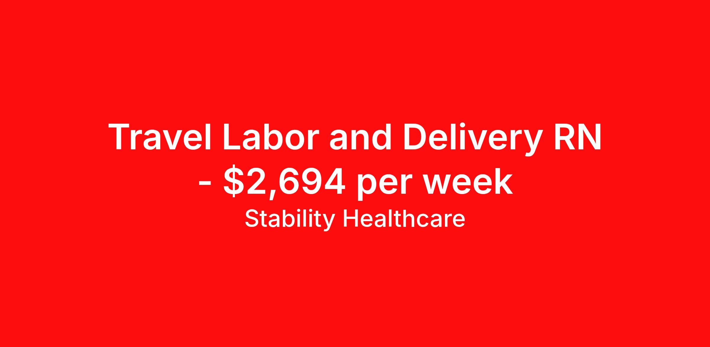 Stability Healthcare is seeking a travel nurse RN Labor and Delivery for a travel nursing job in Los Angeles, California. Job Description & Requirements Specialty: Labor and Delivery Discipline: RN Duration: 13 weeks 36 hours per week Shift: 12 hours, nights Employment Type: Travel Stability Healthcare is looking for a L&D RN contract position in Los Angeles, CA. Labor and Delivery (L&D) Nurses care for women during labor and childbirth, monitoring the baby and the mother, coaching mothers and assisting doctors. As a L&D Nurse, you'll prepare women, and their families, for the stages of giving birth and help patients with breastfeeding after the baby is born. *$600 travel bonus *Day 1 health insurance with United Healthcare *PTO plan start accruing on day 1, use during contract or cash out at the end! *Guaranteed stipend if facility calls you off *Extra hour bonus earn an additional hourly bonus for working over your weekly contracted hours Stability Job ID 745279. Pay package is based on 12 hour shifts and 36 hours per week (subject to confirmation) with tax-free stipend amount to be determined. Posted job title: L&D About Stability Healthcare Stability Healthcare was founded in 2009, with the mission of becoming the best Travel Nursing Agency in California. We have been rated one of the top travel nursing agencies and offer our nurses the highest paying travel nursing jobs available. We have access to the best travel assignments from 1000’s of facilities. You can start the year off in sunny California, spend the Spring in the Colorado Rockies, enjoy the Summer in the Mid-West, experience the change of seasons in Boston and New York, and hit the beaches of Florida in the winter. Our Nurses work in the best hospitals and health systems in the country. Benefits Guaranteed Hours Benefits start day 1