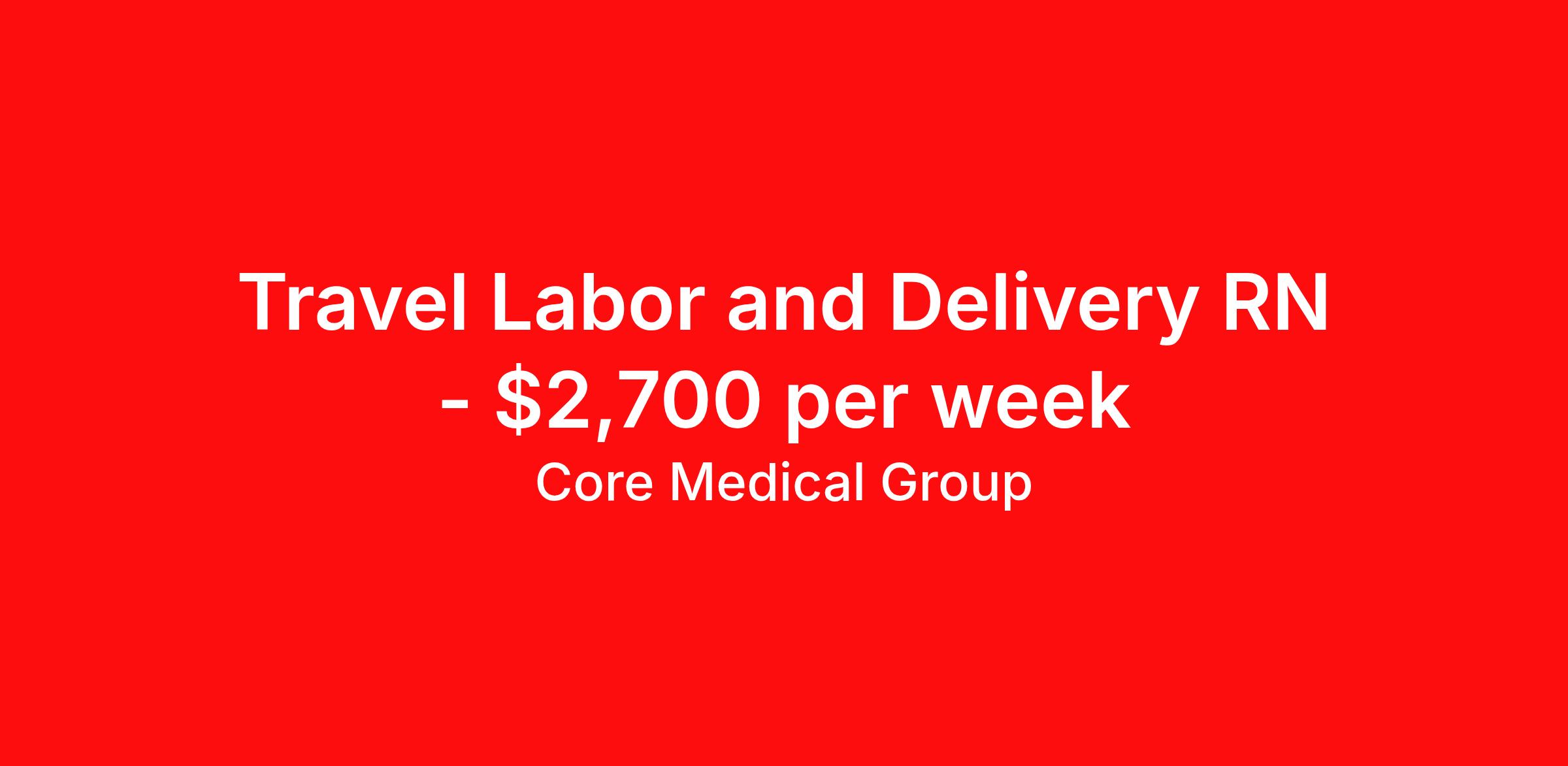 Core Medical Group is seeking a travel nurse RN Labor and Delivery for a travel nursing job in Moses Lake, Washington. Job Description & Requirements Specialty: Labor and Delivery Discipline: RN Start Date: 03/30/2026 Duration: 13 weeks 36 hours per week Shift: 12 hours Employment Type: Travel Client in WA seeking Registered Nurse: Labor & Delivery for the following shift(s): Nights We are looking for a healthcare professional who is ready to provide exceptional patient care in this contract/travel role. Contract/travel assignments are typically 13 weeks, with potential to extend. Help us continue our mission to connect people, improve lives, and give back to the community by joining the CoreMedical Group team. When you work with CoreMedical Group, we put you first and treat you like family, supporting you every step of the way. CoreMedical Group is one of the largest healthcare staffing agencies in the country, with travel and contract positions located across the United States. Our recruiters will help you find the perfect job, whether it's across the country or across the street. In addition to dedicated, personalized support from your recruiter, when you work with CoreMedical Group you'll receive: Access to an extensive benefits package, including day 1 health, dental, and vision insurance, employer paid life insurance, a health reimbursement account, and more! Weekly paychecks with competitive pay packages Matching 401(k) benefits to help you save for retirement Licensure assistance and reimbursement to set you up for success on your contract Travel reimbursement and dedicated housing support while on assignment Referral cash bonuses when you connect us with other clinicians CoreMedical Group also offers you a free, all-inclusive vacation each year as our way of saying "thank you" for your hard work. Join other healthcare professionals on the annual Club CoreMed retreat and you'll see why our contract and travel professionals come back to us year after year! Your career is too valuable to tackle on your own. Let CoreMedical Group help you with your healthcare journey! *Estimate of weekly payments is intended for informational purposes and includes hourly wages, as well as reimbursements for meal & incidental expenses, and housing expenses incurred on behalf of the Company. Any benefits (medical/dental/vision) are in addition to the weekly pay. Please speak with your Recruiter for additional details. Estimated payments are subject to change until formal offer of assignment is made and accepted. Core Medical Group Job ID 1367329. Pay package is based on 12 hour shifts and 36 hours per week (subject to confirmation) with tax-free stipend amount to be determined. Posted job title: RN About Core Medical Group CoreMedical Group is one of the largest healthcare staffing agencies in the country. We have jobs nationwide in travel nursing, travel allied health, interim, locum tenens, and permanent placements! Join the staffing agency with Club CoreMed, the best perk in the industry - an all inclusive paid trip to a tropical resort! Benefits Weekly pay Holiday Pay Guaranteed Hours Continuing Education 401k retirement plan Pet insurance Company provided housing options Sick pay Wellness and fitness programs Mileage reimbursement Referral bonus Employee assistance programs Medical benefits Dental benefits Vision benefits Benefits start day 1 License and certification reimbursement Life insurance Discount program