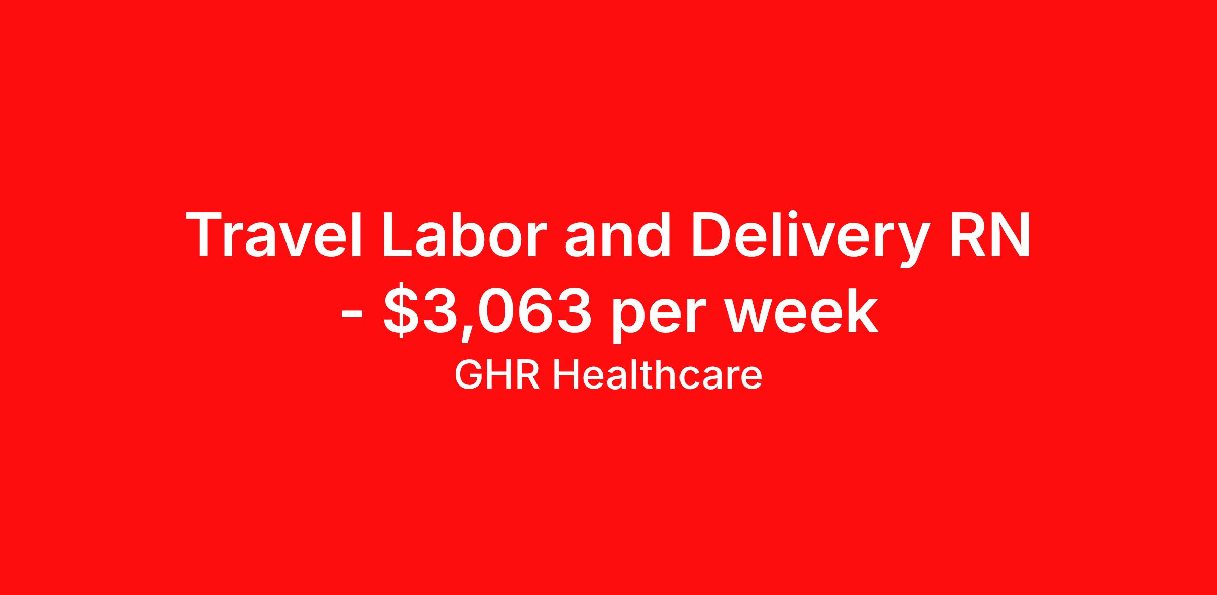 GHR Healthcare is seeking a travel nurse RN Labor and Delivery for a travel nursing job in Lawrence, Massachusetts. Job Description & Requirements Specialty: Labor and Delivery Discipline: RN Start Date: 04/14/2026 Duration: 12 weeks 36 hours per week Shift: 12 hours Employment Type: Travel GHR Healthcare Job ID 76254969. Pay package is based on 12 hour shifts and 36 hours per week (subject to confirmation) with tax-free stipend amount to be determined. About GHR Healthcare For over 30 years, GHR Healthcare has been the bridge between healthcare professionals and the facilities that need them nationwide. We're committed to uncovering your ideal fit, supported by GHR's dedication to competitive compensation, transparent communication, and a devoted team that genuinely cares about your career journey. You can trust us to stand by your side as your advocate, confidante, and partner in advancing your career. At GHR, care and consideration are at the heart of everything we do. Visit ghrhealthcare.com to learn more.
