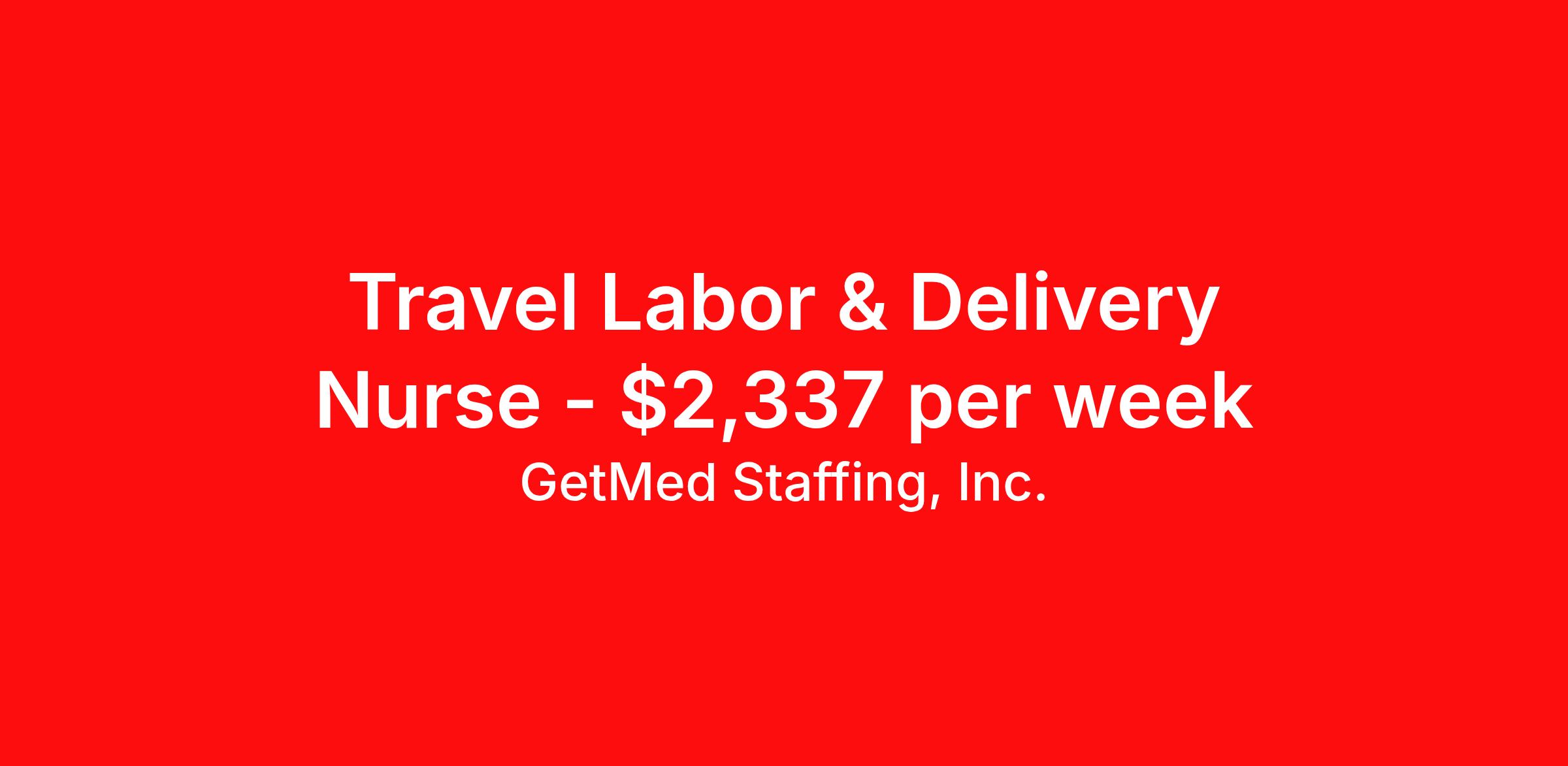 GetMed Staffing, Inc. is seeking a travel nurse RN Labor and Delivery for a travel nursing job in Philadelphia, Pennsylvania. Job Description & Requirements Specialty: Labor and Delivery Discipline: RN Start Date: 03/30/2026 Duration: 13 weeks 36 hours per week Shift: 12 hours, nights Employment Type: Travel GetMed Staffing is searching for a strong L&D RN to assist our traveler-friendly client. A minimum of 1-2 years of experience is required. Traveling with GetMed Staffing offers the unique opportunity to gain diverse experiences, both personally and professionally. Gain experience that matters. GetMed Staffing, Inc. Job ID 36031218. Pay package is based on 12 hour shifts and 36.0 hours per week (subject to confirmation) with tax-free stipend amount to be determined. Posted job title: RN:L&D,19:00:00-07:00:00 About GetMed Staffing, Inc. We are a diversity owned company, specializing in healthcare recruiting services. We truly understand how important a healthcare travelers' relationship is with their recruiter, as well as our relationship is with our healthcare facilities. We recognize that the needs of our healthcare travelers can vary, and therefore we provide the personalized touch necessary to ensure a successful travel assignment each and every time. Our healthcare facilities and clients benefit from us putting our healthcare travelers first. GetMed Staffing is excited to be a leader within the industry by focusing on providing healthcare travelers with more choices and possibilities as they plan for their next healthcare travel assignment. Benefits Life insurance Medical benefits Dental benefits Vision benefits 401k retirement plan