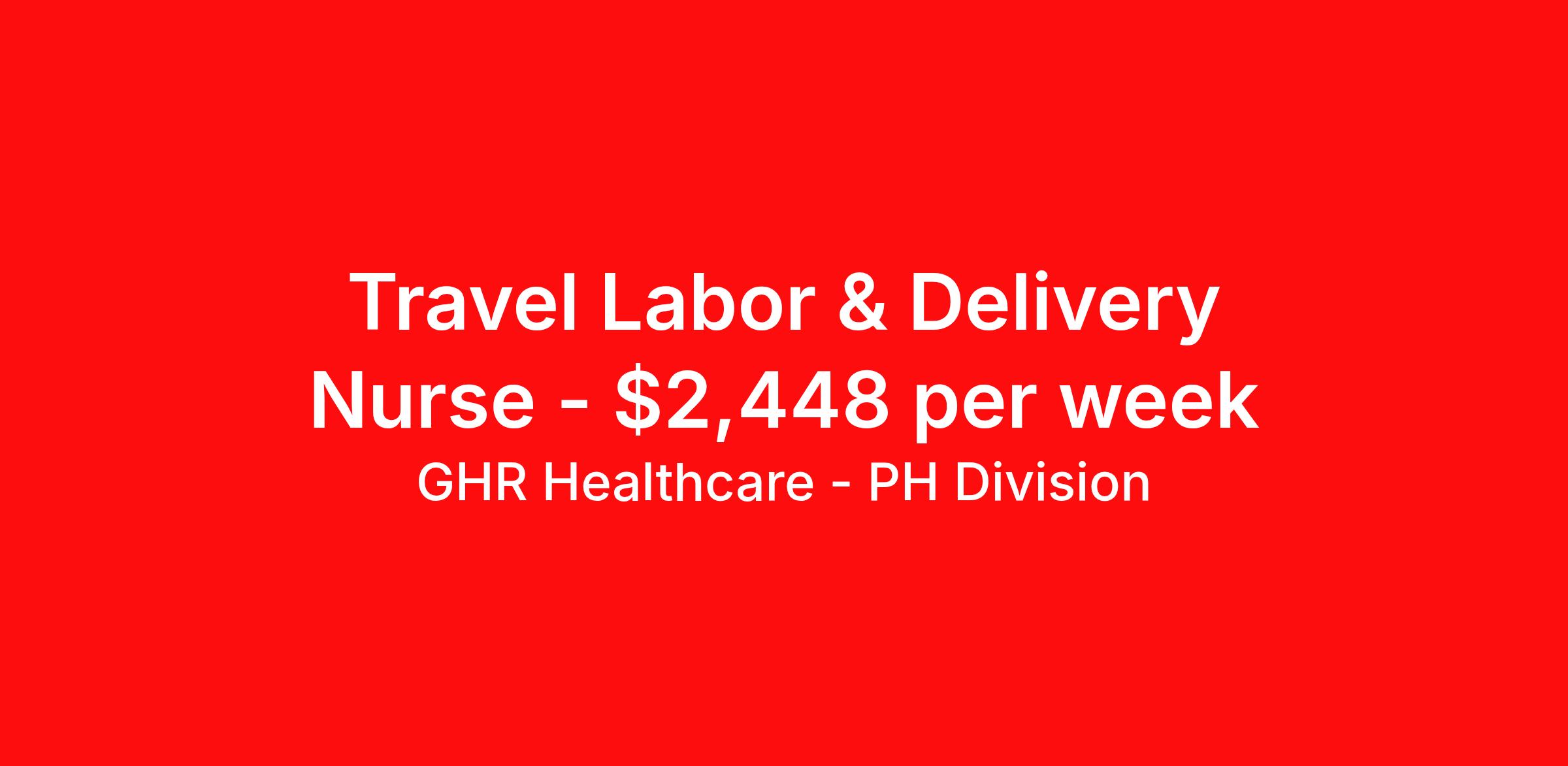 GHR Healthcare - PH Division is seeking a travel nurse RN Labor and Delivery for a travel nursing job in Philadelphia, Pennsylvania. Job Description & Requirements Specialty: Labor and Delivery Discipline: RN Start Date: ASAP Duration: 12 weeks 36 hours per week Shift: 12 hours Employment Type: Travel Planet Healthcare Job ID 75496239. Pay package is based on 12 hour shifts and 36 hours per week (subject to confirmation) with tax-free stipend amount to be determined. About GHR Healthcare - PH Division For over 30 years, GHR Healthcare has been the bridge between healthcare professionals and the facilities that need them nationwide. We're committed to uncovering your ideal fit, supported by GHR's dedication to competitive compensation, transparent communication, and a devoted team that genuinely cares about your career journey. You can trust us to stand by your side as your advocate, confidante, and partner in advancing your career. At GHR, care and consideration are at the heart of everything we do. Visit ghrhealthcare.com to learn more.