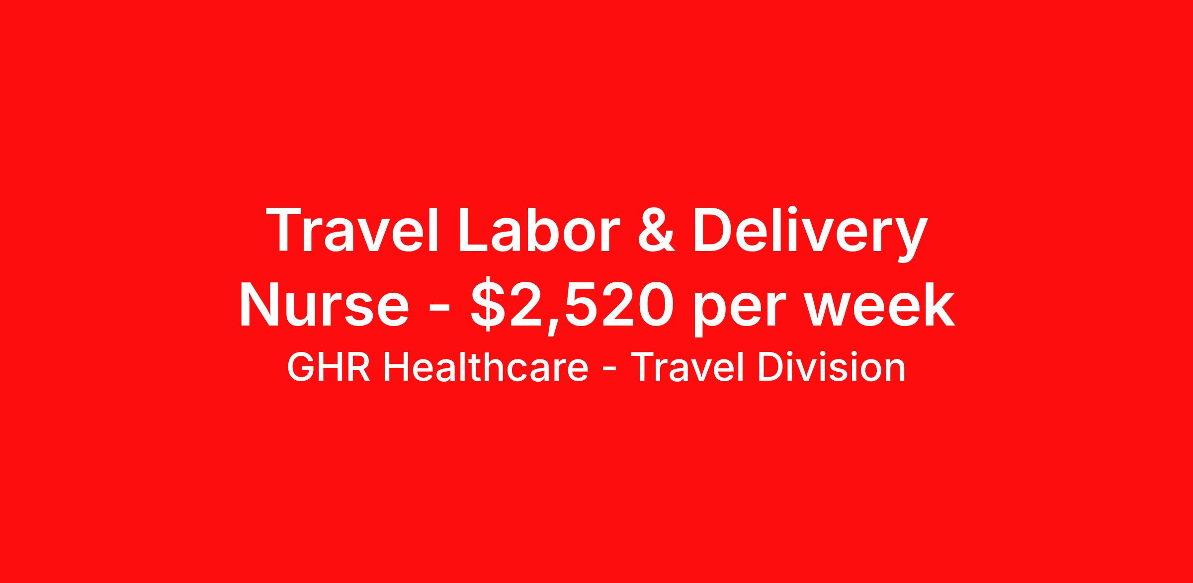 GHR Healthcare - Travel Division is seeking a travel nurse RN Labor and Delivery for a travel nursing job in Philadelphia, Pennsylvania. Job Description & Requirements Specialty: Labor and Delivery Discipline: RN Start Date: ASAP Duration: 12 weeks 36 hours per week Shift: 12 hours Employment Type: Travel GHR Healthcare - Travel Division Job ID 75496239. Pay package is based on 12 hour shifts and 36 hours per week (subject to confirmation) with tax-free stipend amount to be determined. About GHR Healthcare - Travel Division For over 30 years, GHR Healthcare has been the bridge between healthcare professionals and the facilities that need them nationwide. We're committed to uncovering your ideal fit, supported by GHR's dedication to competitive compensation, transparent communication, and a devoted team that genuinely cares about your career journey. You can trust us to stand by your side as your advocate, confidante, and partner in advancing your career. At GHR, care and consideration are at the heart of everything we do. Visit ghrhealthcare.com to learn more.