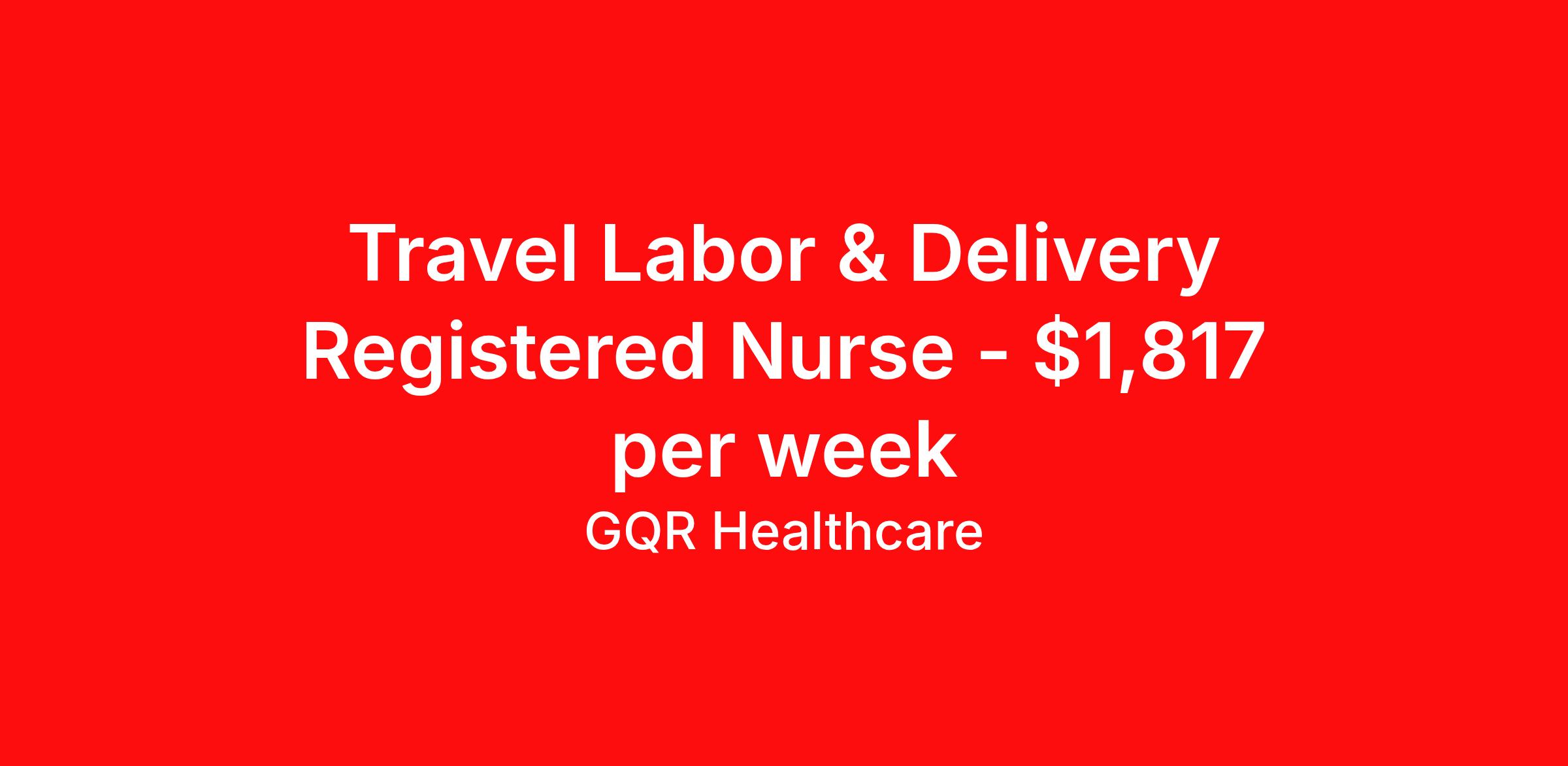 Travel Labor & Delivery Registered Nurse - $1,817 per week