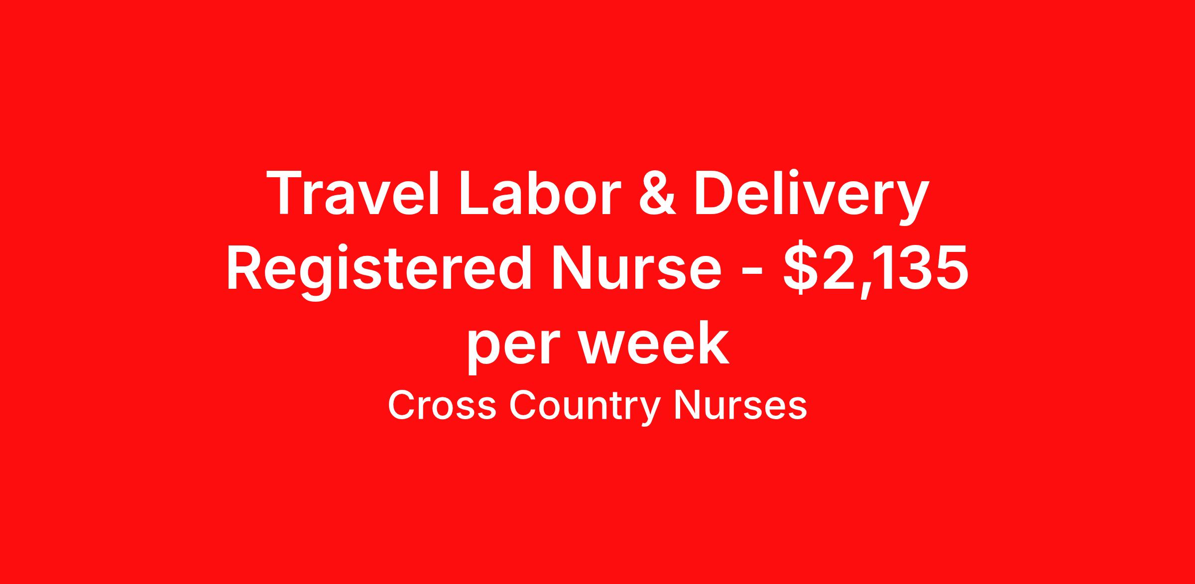 Cross Country Nurses is seeking a travel nurse RN Labor and Delivery for a travel nursing job in Petoskey, Michigan. Job Description & Requirements Specialty: Labor and Delivery Discipline: RN Start Date: 04/13/2026 Duration: 13 weeks 36 hours per week Shift: 12 hours, nights Employment Type: Travel Job Description As a labor and delivery nurse (RN L&D), you will care for women and newborns during the antepartum, intrapartum, postpartum, and neonatal stages of childbirth. This includes coaching women throughout the birthing process, monitoring the mother's and baby's vitals, administering medication and managing potential complications that may arise. You may also be called upon to assist in caesarian sections. You will provide education and guidance to new mothers in regard to recovery and caring for their infants. Minimum Requirements At least 1 year of recent acute care experience in specialty Active RN license Benefits The benefits of taking a travel nursing job with Cross Country include: Private housing or generous housing allowance Comprehensive health insurance with prescription coverage Dependent health insurance with prescription coverage Competitive salaries Referral bonuses Travel reimbursement 401(k) retirement plan Direct deposit/free checking Unlimited free CE credits Cross Country Job ID 1235048. Pay package is based on 12 hour shifts and 36 hours per week (subject to confirmation) with tax-free stipend amount to be determined. Posted job title: Registered Nurse / Labor And Delivery Department About Cross Country Nurses You care for others — we’re here to care for you. At Cross Country, we know travel nursing is about more than just the job. It’s about building a career that supports your lifestyle, your values, and your impact. We offer competitive pay, full benefits, and 24/7 support from a team that truly understands what it means to be on the front lines. Wherever your journey takes you, we’re with you every step of the way. Let’s build your best life — one assignment at a time. Benefits 401k retirement plan Referral bonus