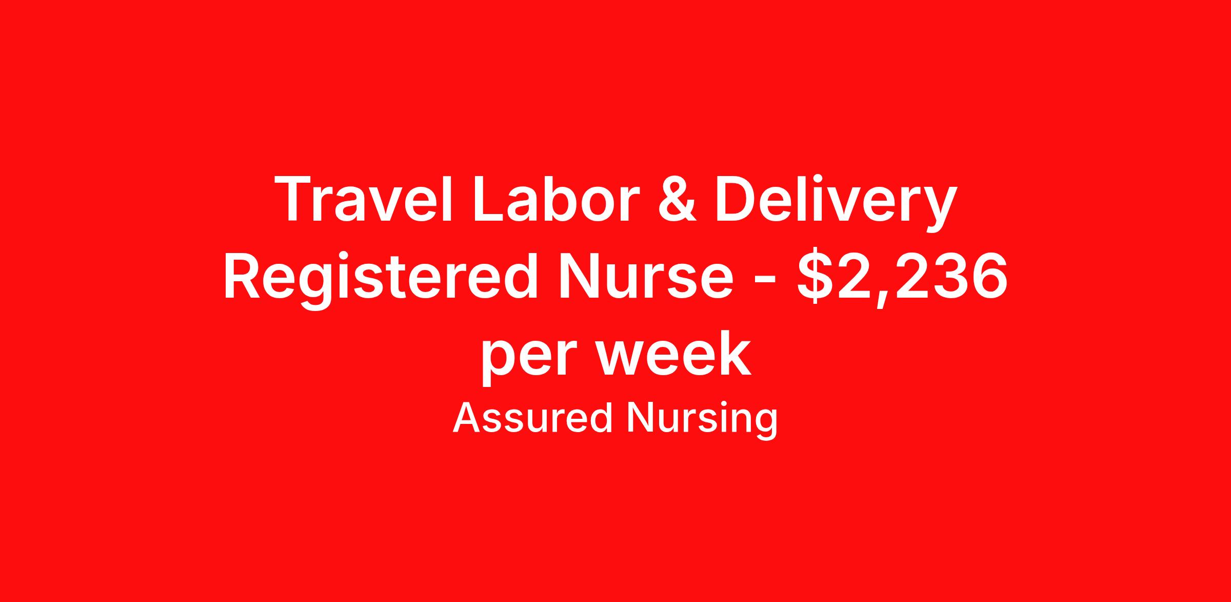 Assured Nursing is seeking a travel nurse RN Labor and Delivery for a travel nursing job in West Bloomfield, Michigan. Job Description & Requirements Specialty: Labor and Delivery Discipline: RN Start Date: 03/30/2026 Duration: 13 weeks 36 hours per week Shift: 12 hours, nights Employment Type: Travel Assured Nursing is currently seeking a RN for a contract position in West Bloomfield Michigan . This is a 7p-7:30a, 19:00:00-07:30:00, 12.00-3 position in the 3A4095 :HFWB Labor and Delivery Henry Ford West Bloomfield Hospital . The ideal candidate will possess a current state license as a RN and have at least 2 years of recent experience as a L&D RN . Assured Nursing Job ID 36188509. Pay package is based on 12 hour shifts and 36.0 hours per week (subject to confirmation) with tax-free stipend amount to be determined. Posted job title: RN:L&D,19:00:00-07:30:00 Benefits Weekly pay Holiday Pay 401k retirement plan Referral bonus Medical benefits Dental benefits Vision benefits