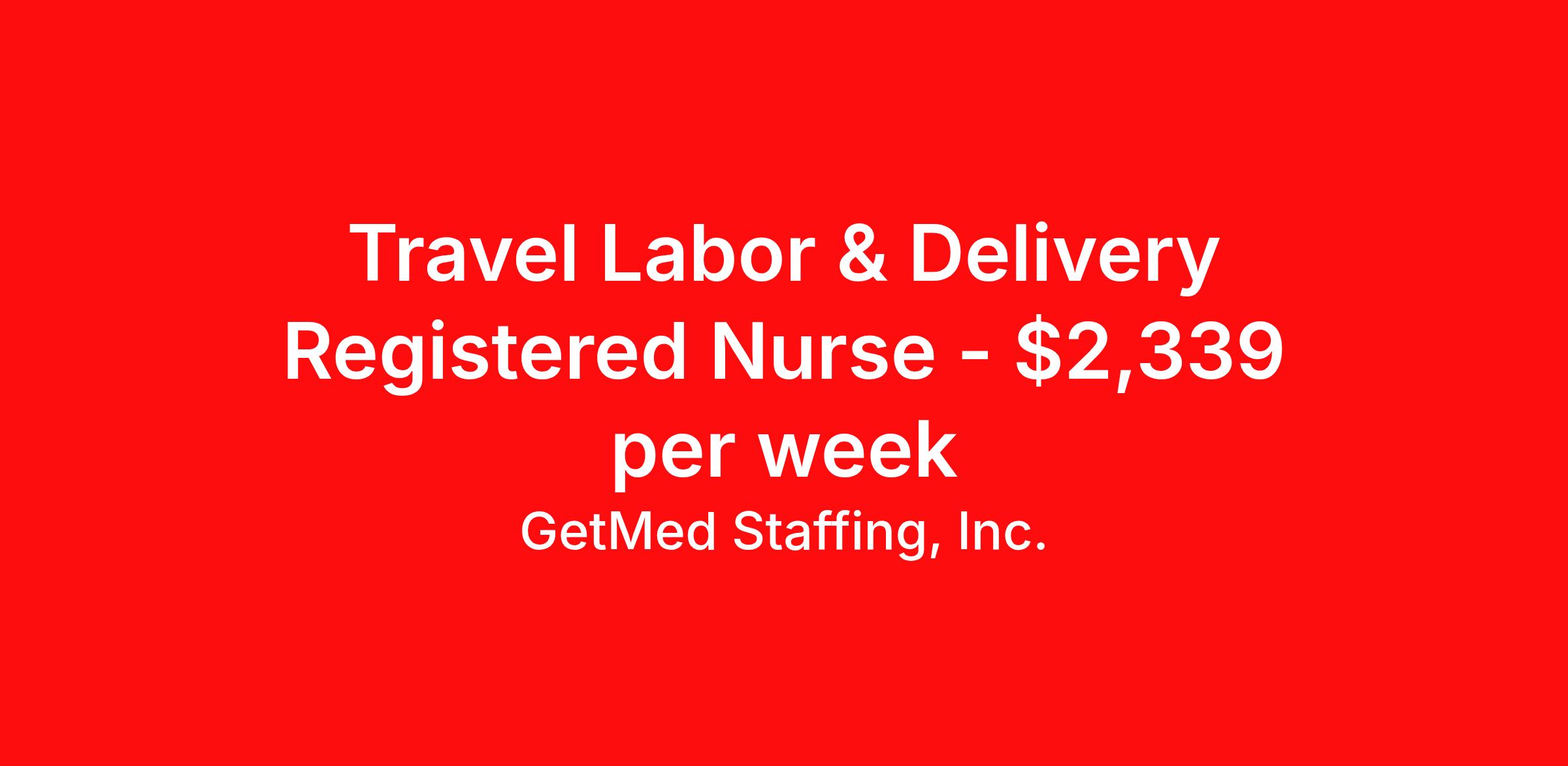 GetMed Staffing, Inc. is seeking a travel nurse RN Labor and Delivery for a travel nursing job in Reno, Nevada. Job Description & Requirements Specialty: Labor and Delivery Discipline: RN Start Date: 04/06/2026 Duration: 13 weeks 36 hours per week Shift: 12 hours, nights Employment Type: Travel GetMed Staffing is searching for a strong L&D RN to assist our traveler-friendly client. A minimum of 1-2 years of experience is required. Traveling with GetMed Staffing offers the unique opportunity to gain diverse experiences, both personally and professionally. Gain experience that matters. GetMed Staffing, Inc. Job ID 36025621. Pay package is based on 12 hour shifts and 36.0 hours per week (subject to confirmation) with tax-free stipend amount to be determined. Posted job title: RN:L&D,19:00:00-07:00:00 About GetMed Staffing, Inc. We are a diversity owned company, specializing in healthcare recruiting services. We truly understand how important a healthcare travelers' relationship is with their recruiter, as well as our relationship is with our healthcare facilities. We recognize that the needs of our healthcare travelers can vary, and therefore we provide the personalized touch necessary to ensure a successful travel assignment each and every time. Our healthcare facilities and clients benefit from us putting our healthcare travelers first. GetMed Staffing is excited to be a leader within the industry by focusing on providing healthcare travelers with more choices and possibilities as they plan for their next healthcare travel assignment. Benefits Life insurance Medical benefits Dental benefits Vision benefits 401k retirement plan