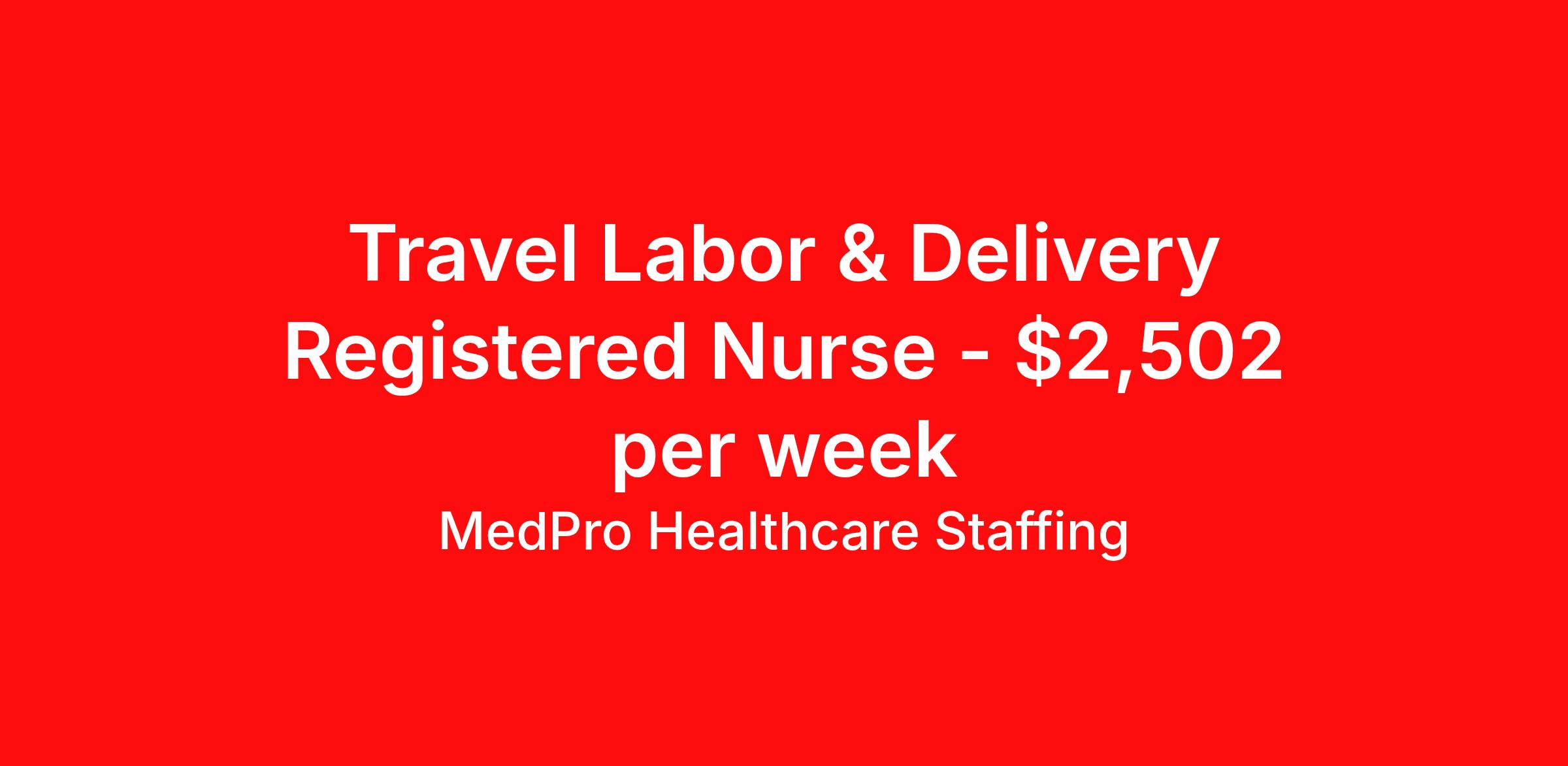 MedPro Healthcare Staffing is seeking a travel nurse RN Labor and Delivery for a travel nursing job in Grand Island, Nebraska. Job Description & Requirements Specialty: Labor and Delivery Discipline: RN Start Date: 04/13/2026 Duration: 13 weeks 36 hours per week Shift: 12 hours, days, nights Employment Type: Travel MedPro Healthcare Staffing , a Joint Commission-certified staffing agency, is seeking a quality Labor & Delivery Registered Nurse for a travel assignment with one of our top healthcare clients. Requirements Active RN License Degree from accredited nursing program BLS, ACLS, NRP, PALS AWHONN Certifications Eighteen months of recent experience in an Acute Care Labor and Delivery (L&D) setting Other requirements to be determined by our client facility Benefits Weekly pay and direct deposit Full coverage of all credentialing fees Private housing or housing allowance Group Health insurance for you and your family Company-paid life and disability insurance Travel reimbursement 401(k) matching Unlimited Referral Bonuses up to $1,000 Duties Responsibilities Labor and Delivery Nurses (RN), also called perinatal nurses, provide care and support for women before, during and after delivery of the baby. They are responsible for making sure that the medical as well as the emotional needs of the patient are adequately met throughout the entire birthing process. Labor and Delivery (LD) nurses provide care to women and their newborns during the antepartum, intrapartum, postpartum and neonatal stages. Monitor vital signs of the mother and baby during birth. Monitor patients for potential high risk problems. Educate and support mothers and their families after giving birth. About Agency MedPro Healthcare Staffing is a Joint Commission certified provider of contract staffing services. Since 1983, we have placed nursing and allied travelers in top healthcare facilities nationwide. Join us today for your very own MedPro Experience®. If qualified and interested, please call for immediate consideration. MedPro Staffing is an Equal Opportunity Employer. All applicants will be considered for employment without attention to race, color, religion, national origin, age, sex, disability, marital status or veteran status. Key Words: Registered Nurse, RN, Labor & Delivery, Contract Nurse, Travel Nurse, Agency RN, Travel RN, Nursing, Contract, L&D, Labor and Delivery, LD *Weekly payment estimates are intended for informational purposes only and include a gross estimate of hourly wages and reimbursements for meal, incidental, and housing expenses. Your recruiter will confirm your eligibility and provide additional details. MedPro Job ID a0Fcx00000HVOYvEAP. Pay package is based on 12 hour shifts and 36 hours per week (subject to confirmation) with tax-free stipend amount to be determined. Posted job title: Labor & Delivery Registered Nurse Nursing: Labor and Delivery. About MedPro Healthcare Staffing At MedPro Healthcare Staffing , we believe no one cares more for caregivers than we do. Our mission is simple: you focus on your patients, and we’ll take care of the rest. As a Joint Commission-certified leader in temporary and contract healthcare staffing since 1983, MedPro has proudly connected nursing and allied travelers with top healthcare facilities across the nation. With thousands of job opportunities available nationwide, we make it easy to find assignments that align with your goals and lifestyle. Our on-staff clinical support team—alongside a compassionate group of experienced recruiters—provides hands-on guidance every step of the way. From Day 1 medical benefits and a 401(k) plan to personalized career support, we’re committed to ensuring every professional we serve feels valued, cared for, and empowered to succeed. Guided by a CEO who is a Registered Nurse, MedPro is built on a foundation of clinical insight and genuine compassion for the caregiving community. Through The MedPro Experience® , we deliver travel assignments that are rewarding, memorable, and designed to help you DREAM big, EXPLORE often, and ACHIEVE greatness. Benefits Day 1 medical, dental, and vision benefits for you and your family Weekly pay and direct deposit Unlimited Referral Bonuses starting at $500 On Staff Clinical Support Team Access to nationwide travel assignments MPX Mobile app -24/7 real-time access to jobs, credentials, assignment details, and more Full coverage of all credentialing fees Private housing or housing allowance Tax Free Per Diems, Housing Stipends and Travel Reimbursements Company-paid life and disability insurance Travel reimbursement 401(k) matching Benefits Weekly pay Referral bonus Employee assistance programs