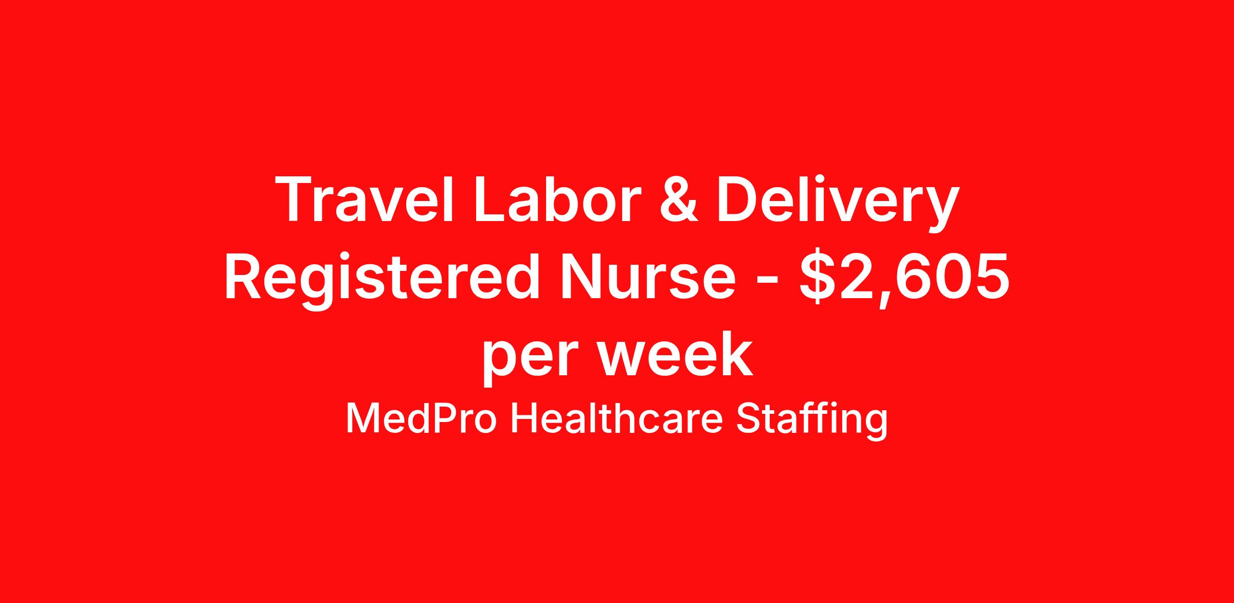 MedPro Healthcare Staffing is seeking a travel nurse RN Labor and Delivery for a travel nursing job in Reno, Nevada. Job Description & Requirements Specialty: Labor and Delivery Discipline: RN Start Date: 04/06/2026 Duration: 13 weeks 36 hours per week Shift: 12 hours, nights Employment Type: Travel MedPro Healthcare Staffing , a Joint Commission-certified staffing agency, is seeking a quality Labor & Delivery Registered Nurse for a travel assignment with one of our top healthcare clients. Requirements Active RN License Degree from accredited nursing program BLS, ACLS, NRP, PALS AWHONN Certifications Eighteen months of recent experience in an Acute Care Labor and Delivery (L&D) setting Other requirements to be determined by our client facility Benefits Weekly pay and direct deposit Full coverage of all credentialing fees Private housing or housing allowance Group Health insurance for you and your family Company-paid life and disability insurance Travel reimbursement 401(k) matching Unlimited Referral Bonuses up to $1,000 Duties Responsibilities Labor and Delivery Nurses (RN), also called perinatal nurses, provide care and support for women before, during and after delivery of the baby. They are responsible for making sure that the medical as well as the emotional needs of the patient are adequately met throughout the entire birthing process. Labor and Delivery (LD) nurses provide care to women and their newborns during the antepartum, intrapartum, postpartum and neonatal stages. Monitor vital signs of the mother and baby during birth. Monitor patients for potential high risk problems. Educate and support mothers and their families after giving birth. About Agency MedPro Healthcare Staffing is a Joint Commission certified provider of contract staffing services. Since 1983, we have placed nursing and allied travelers in top healthcare facilities nationwide. Join us today for your very own MedPro Experience®. If qualified and interested, please call for immediate consideration. MedPro Staffing is an Equal Opportunity Employer. All applicants will be considered for employment without attention to race, color, religion, national origin, age, sex, disability, marital status or veteran status. Key Words: Registered Nurse, RN, Labor & Delivery, Contract Nurse, Travel Nurse, Agency RN, Travel RN, Nursing, Contract, L&D, Labor and Delivery, LD *Weekly payment estimates are intended for informational purposes only and include a gross estimate of hourly wages and reimbursements for meal, incidental, and housing expenses. Your recruiter will confirm your eligibility and provide additional details. MedPro Job ID a0Fcx00000GCWfdEAH. Pay package is based on 12 hour shifts and 36 hours per week (subject to confirmation) with tax-free stipend amount to be determined. Posted job title: Labor & Delivery Registered Nurse Nursing: Labor and Delivery. About MedPro Healthcare Staffing At MedPro Healthcare Staffing , we believe no one cares more for caregivers than we do. Our mission is simple: you focus on your patients, and we’ll take care of the rest. As a Joint Commission-certified leader in temporary and contract healthcare staffing since 1983, MedPro has proudly connected nursing and allied travelers with top healthcare facilities across the nation. With thousands of job opportunities available nationwide, we make it easy to find assignments that align with your goals and lifestyle. Our on-staff clinical support team—alongside a compassionate group of experienced recruiters—provides hands-on guidance every step of the way. From Day 1 medical benefits and a 401(k) plan to personalized career support, we’re committed to ensuring every professional we serve feels valued, cared for, and empowered to succeed. Guided by a CEO who is a Registered Nurse, MedPro is built on a foundation of clinical insight and genuine compassion for the caregiving community. Through The MedPro Experience® , we deliver travel assignments that are rewarding, memorable, and designed to help you DREAM big, EXPLORE often, and ACHIEVE greatness. Benefits Day 1 medical, dental, and vision benefits for you and your family Weekly pay and direct deposit Unlimited Referral Bonuses starting at $500 On Staff Clinical Support Team Access to nationwide travel assignments MPX Mobile app -24/7 real-time access to jobs, credentials, assignment details, and more Full coverage of all credentialing fees Private housing or housing allowance Tax Free Per Diems, Housing Stipends and Travel Reimbursements Company-paid life and disability insurance Travel reimbursement 401(k) matching Benefits Weekly pay Referral bonus Employee assistance programs