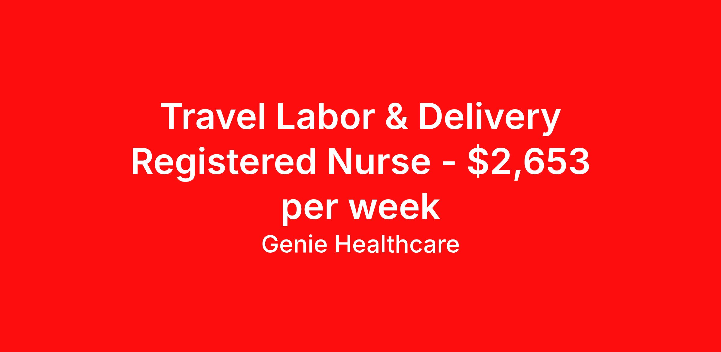 Genie Healthcare is seeking a travel nurse RN Labor and Delivery for a travel nursing job in Washington, District of Columbia. Job Description & Requirements Specialty: Labor and Delivery Discipline: RN Start Date: 04/13/2026 Duration: 13 weeks 36 hours per week Shift: 12 hours, nights Employment Type: Travel Genie Healthcare is looking for a RN to work in Labor & Delivery (L&D) for a 12.71 weeks travel assignment located in Washington, DC for the Shift (3x12 nights, 19:00:00-07:00:00, 12.00-3). Pay and benefits packages are estimated based on client bill rate at time the job was posted. These rates are subject to change. Exact pay and benefits vary based on several things, including, but not limited to, guaranteed hours, client changes in bill rate, experience, etc. Benefits: Medical Insurance, Dental Insurance, Vision Insurance, 401(k) with company matching (50% up to 6% of what you contribute) Genie Healthcare Job ID 17193643. Pay package is based on 12 hour shifts and 36.0 hours per week (subject to confirmation) with tax-free stipend amount to be determined. Posted job title: RN:Labor & Delivery (L&D),19:00:00-07:00:00 About Genie Healthcare Genie Healthcare is one of the fastest growing Nurse Travel Agencies in the USA. Genie serves hundreds of facilities and has over 4000 current travel RN contracts open at any given time. Genie provides travel RN’s flexibility, support, top pay scale, housing and the 1 rated, multi-state health insurance coverage. Genie Healthcare carries with it a commitment to providing a comprehensive level of service and quality care. Growing from a small team of eager recruiters to a company with satisfied clients in nearly every corner of the nation, delivering excellence in patient and customer care is the key to Genie’s success. The management team has 20 years of experience in workforce solutions and staffing in medical and non-medical fields, roles ranging from Clerical job to Cardiologist to software developer to CEO.