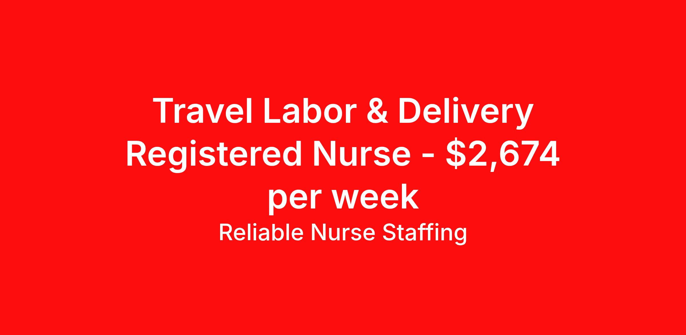 Reliable Nurse Staffing is seeking a travel nurse RN Labor and Delivery for a travel nursing job in Silverdale, Washington. Job Description & Requirements Specialty: Labor and Delivery Discipline: RN Start Date: 04/06/2026 Duration: 13 weeks 36 hours per week Shift: 12 hours, days Employment Type: Travel Reliable Nurse Staffing Job ID 60490915. Pay package is based on 12 hour shifts and 36 hours per week (subject to confirmation) with tax-free stipend amount to be determined. About Reliable Nurse Staffing Providing reliable, competent, and compassionate care to our patients and clients. Benefits Weekly pay Holiday Pay Guaranteed Hours Referral bonus Medical benefits Dental benefits Vision benefits Life insurance