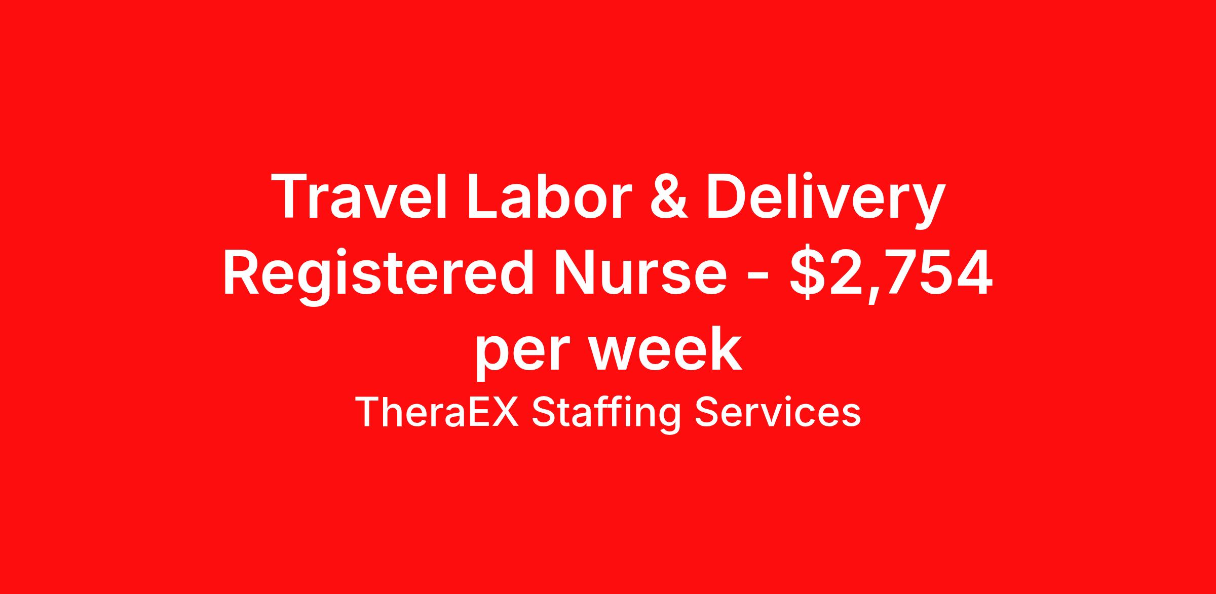 TheraEX Staffing Services is seeking a travel nurse RN Labor and Delivery for a travel nursing job in Omaha, Nebraska. Job Description & Requirements Specialty: Labor and Delivery Discipline: RN Start Date: 04/13/2026 Duration: 13 weeks 36 hours per week Shift: 12 hours, nights Employment Type: Travel Minimum 2 year recent L&D RN experience / CERTIFICATION – BLS, ACLS, NRP, AWHONN/ Active RN license/ Schedule: Night, 12s, 07:00 PM–07:30 AM, EOW, 36 hrs/week / Radius Rule: 50 miles / EMR: EPIC/ PAY IS NEGOTIABLE! TheraEX Staffing Services Job ID 1070787. Pay package is based on 12 hour shifts and 36 hours per week (subject to confirmation) with tax-free stipend amount to be determined. About TheraEX Staffing Services TheraEx Staffing Services is a leading name in healthcare staffing solutions. We enroll talented professionals to provide temporary staff to fill the needs of healthcare facilities across the nation. Benefits Dental benefits Vision benefits 401k retirement plan Health Care FSA Life insurance Sick pay Holiday Pay Medical benefits